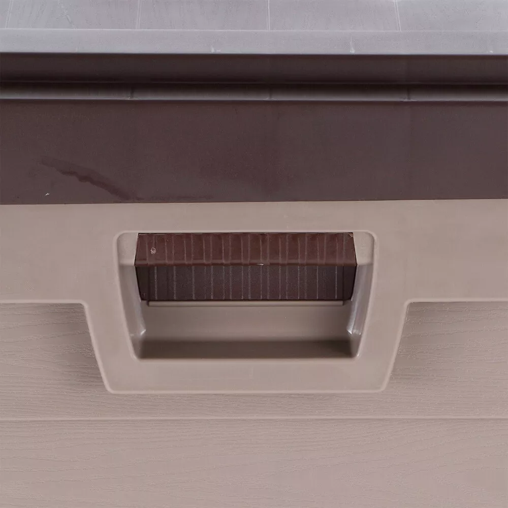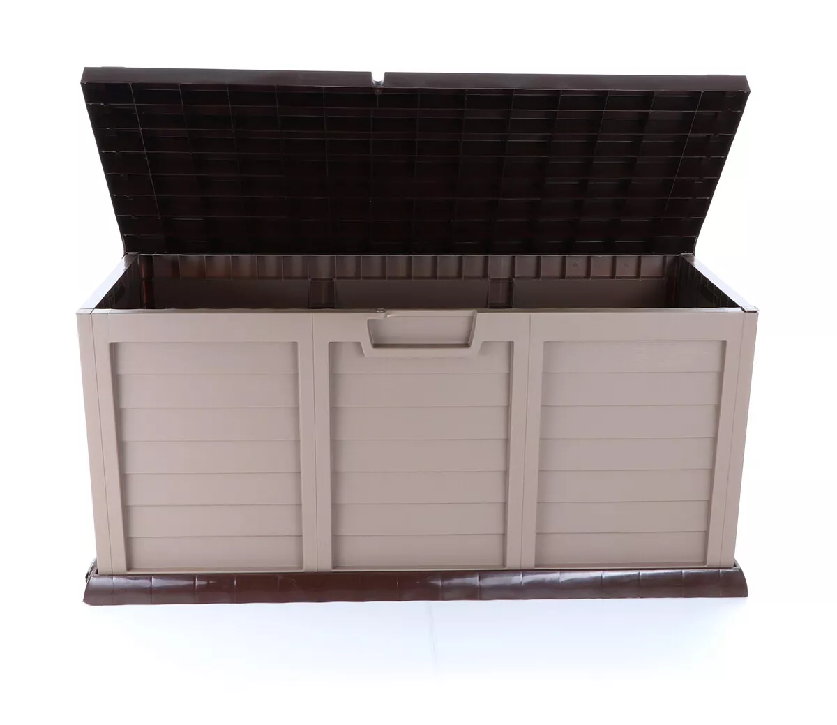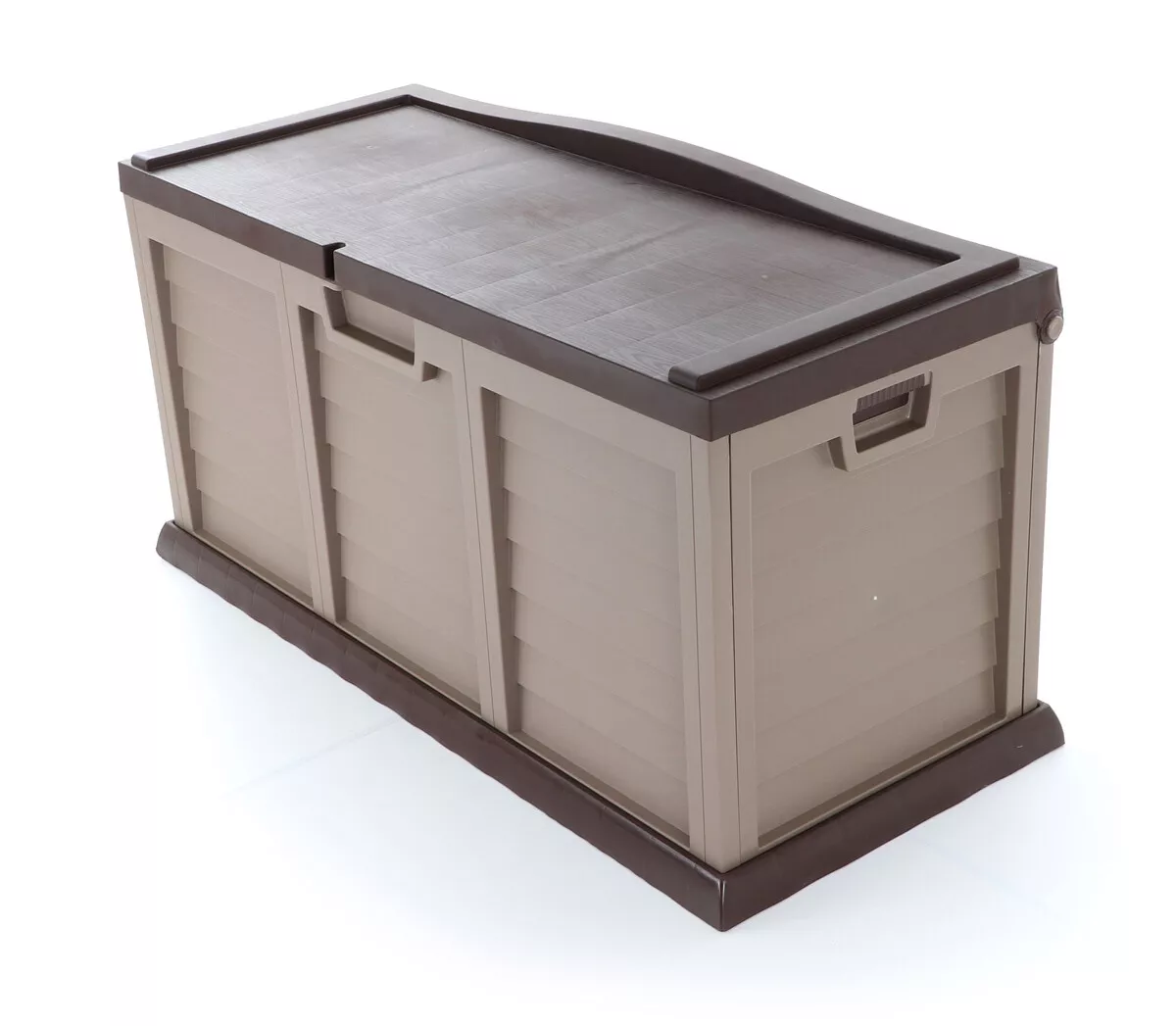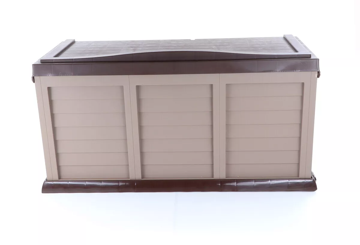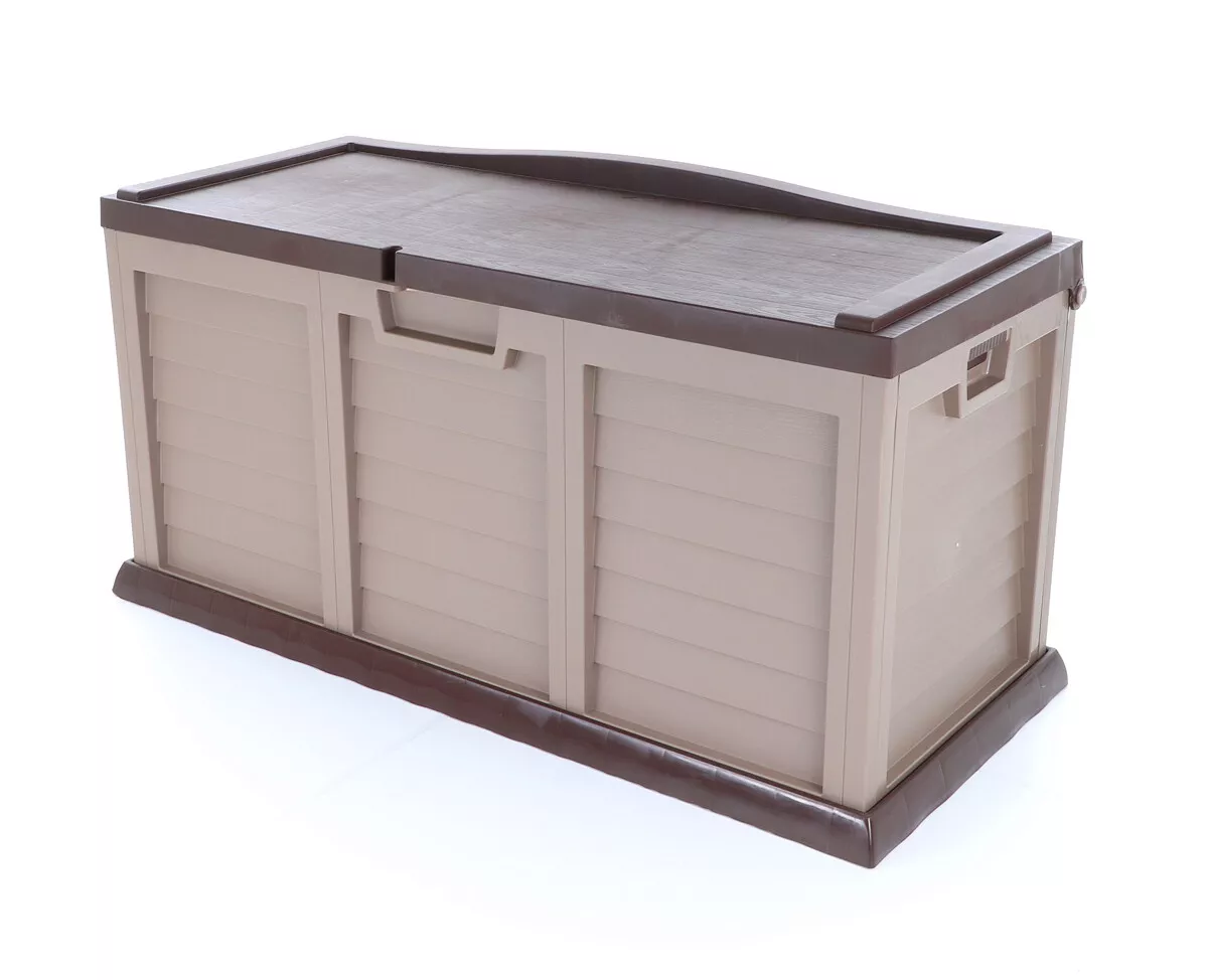 - Velmi praktický úložný box s velkým objemem, který je praktický na zahrady, terasy, balkóny, do garáže nebo zimní zahrady na uskladnění podušek ze zahradního nábytku, hraček apod. Lze jej umístit do exteriéru i interiéru.
