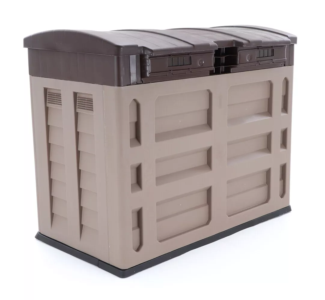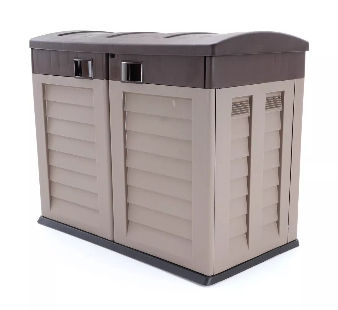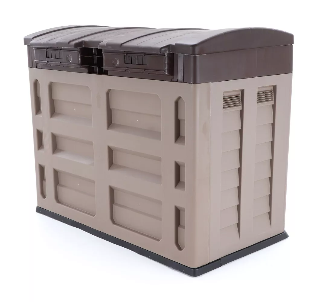 - Velmi praktický přístřešek na 2 popelnice s velkým objemem, který je praktický k rodinným domům, chatám a chalupám. Lze jej umístit do exteriéru i interiéru.