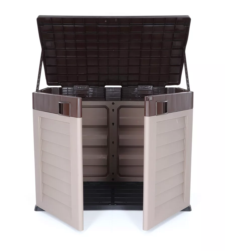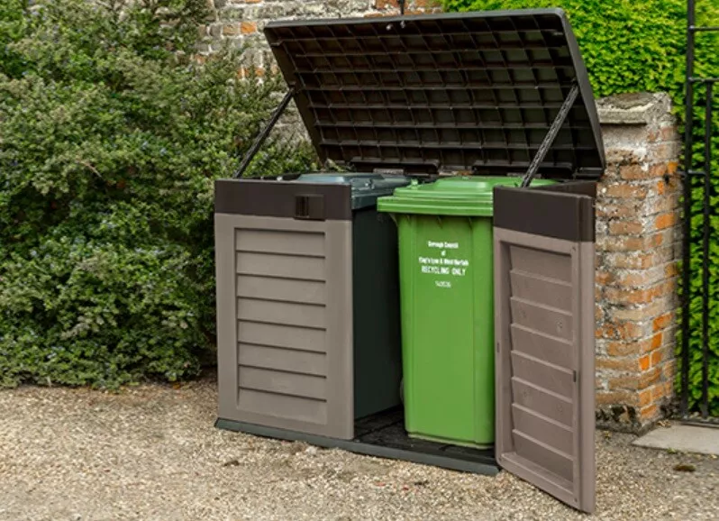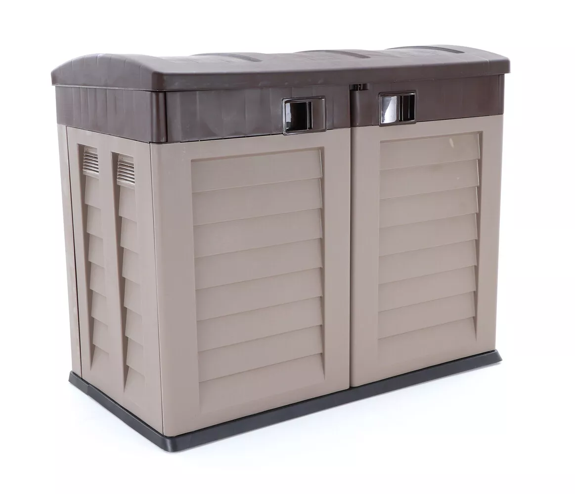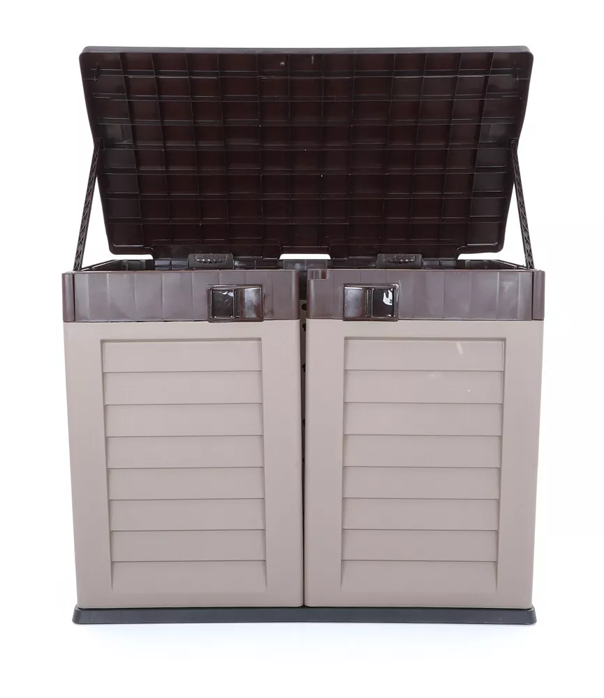 - Velmi praktický přístřešek na 2 popelnice s velkým objemem, který je praktický k rodinným domům, chatám a chalupám. Lze jej umístit do exteriéru i interiéru.
