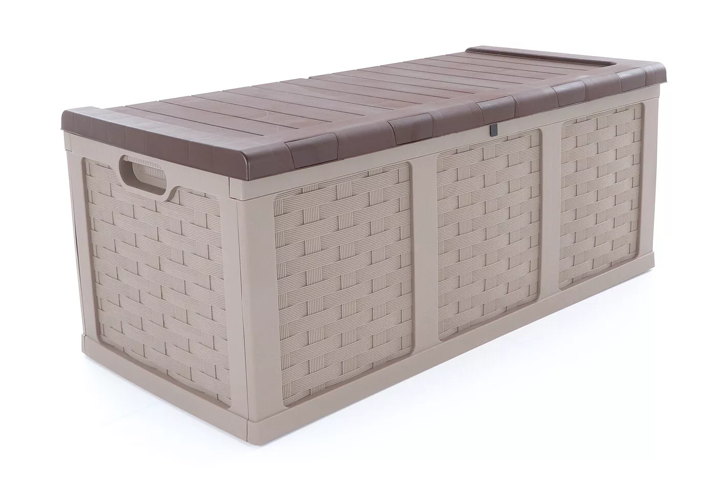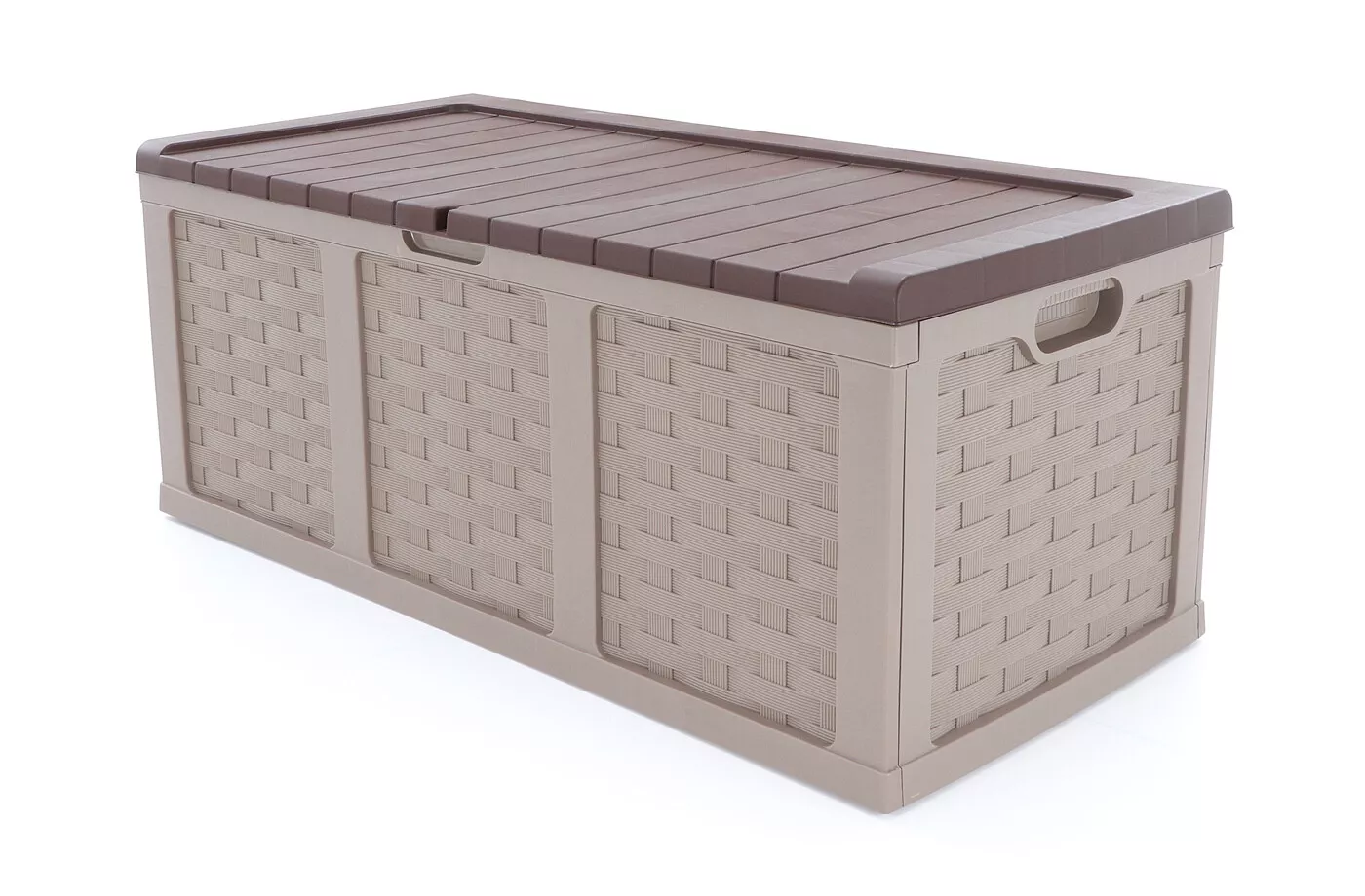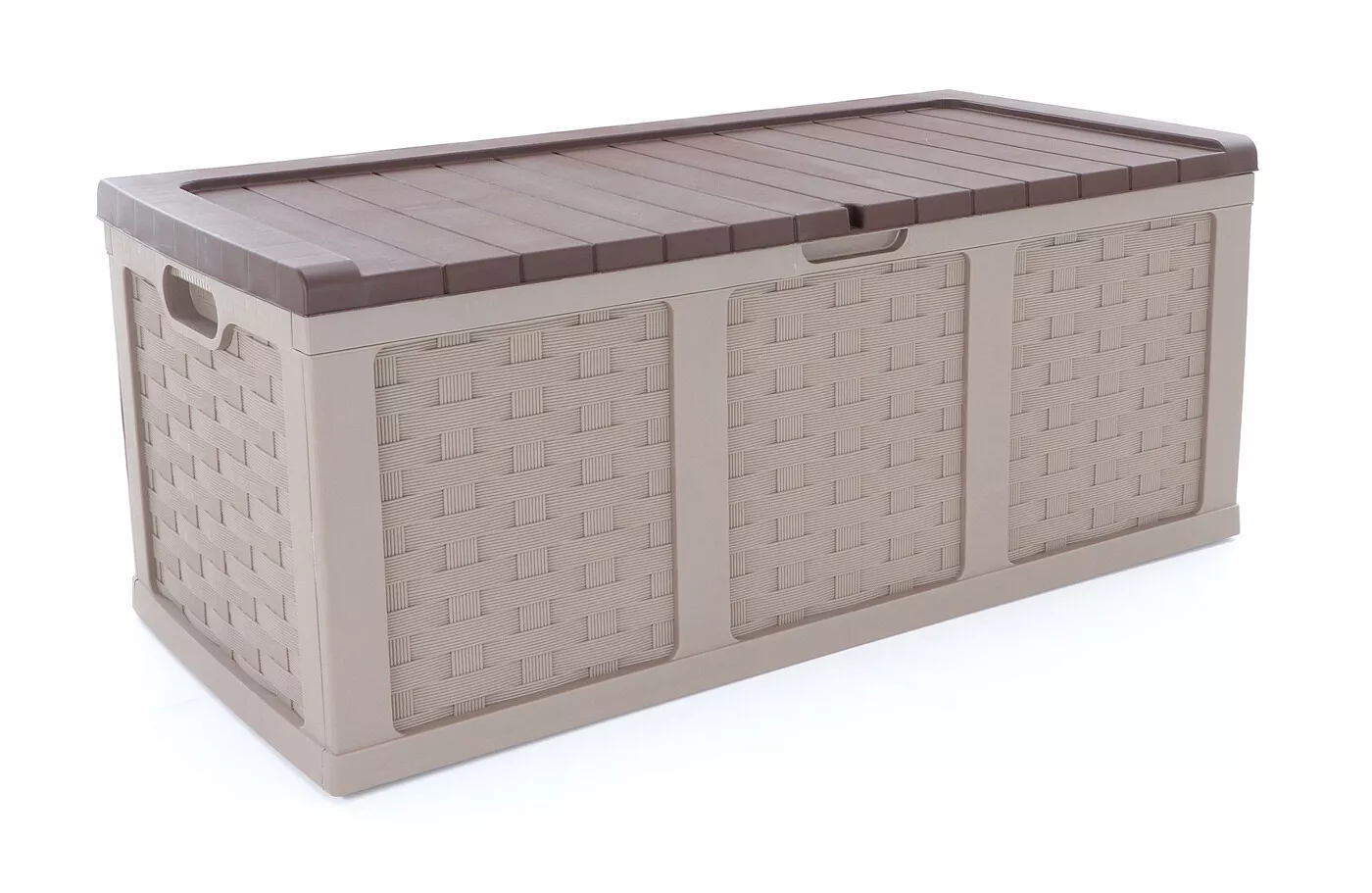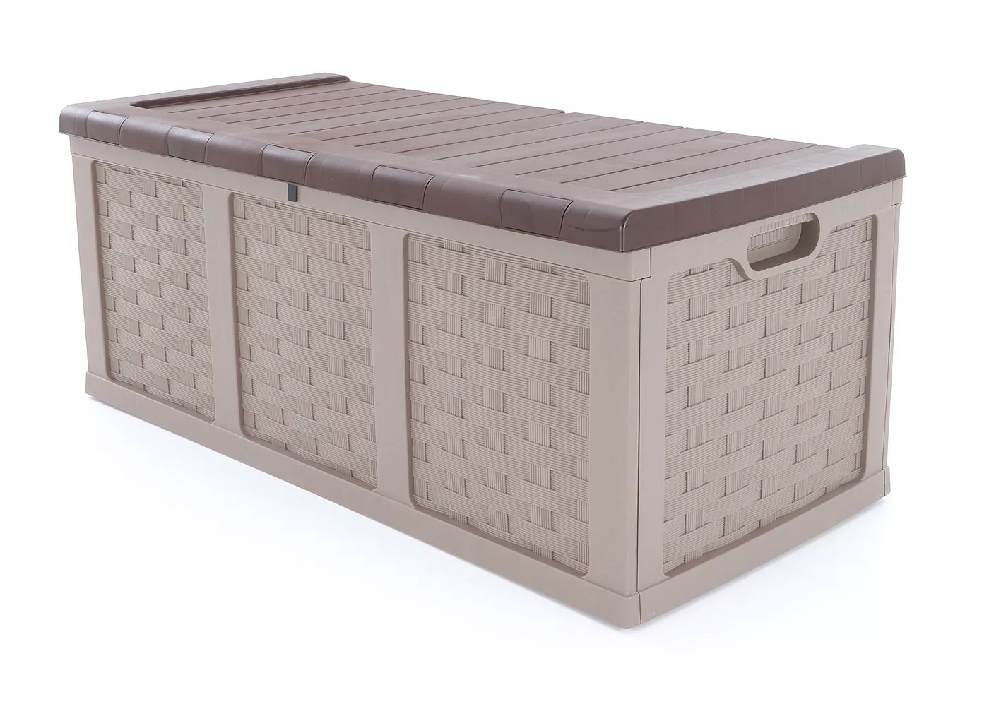 - Velmi praktický úložný box s velkým objemem, který je praktický na zahrady, terasy, balkóny, do garáže nebo zimní zahrady na uskladnění podušek ze zahradního nábytku, hraček apod. Lze jej umístit do exteriéru i interiéru. - Sedací víko pro 3 dospělé osoby