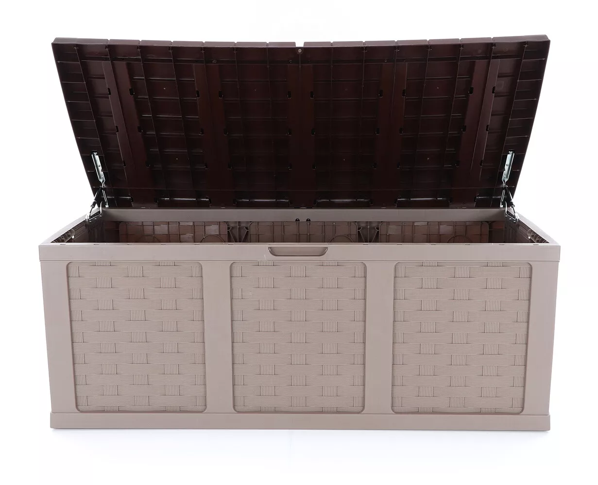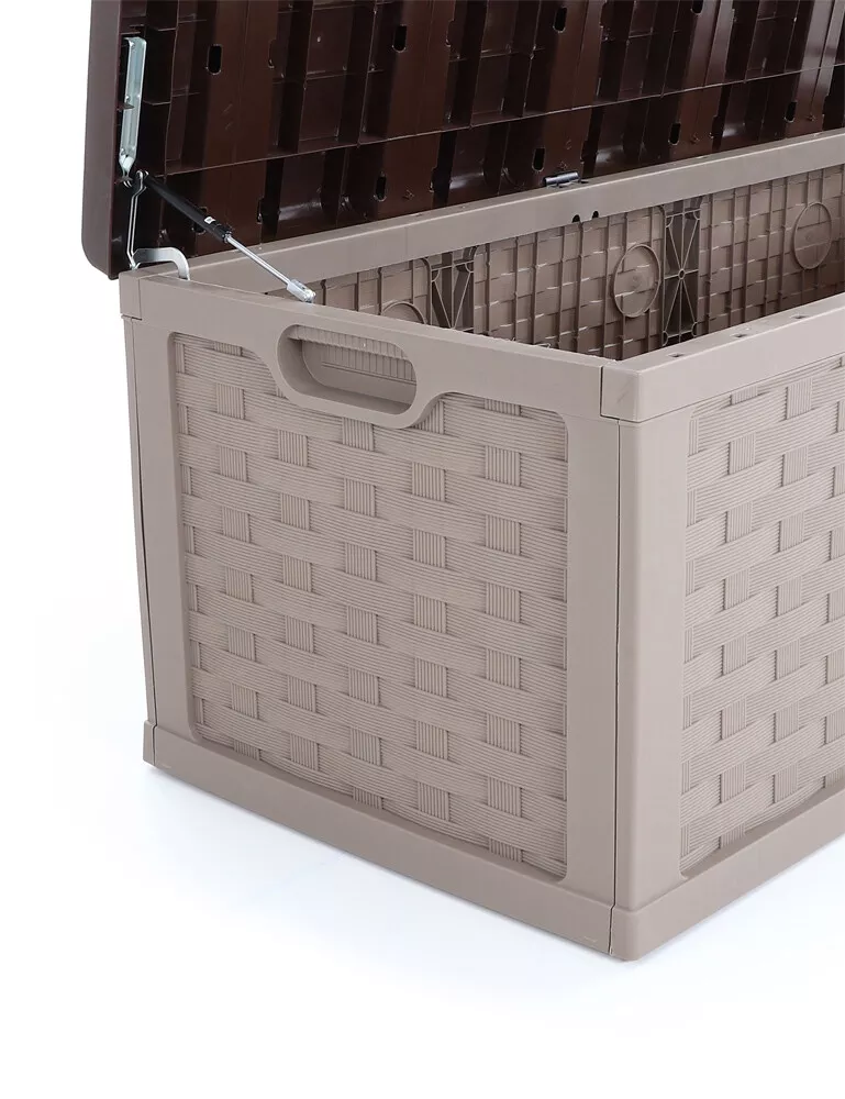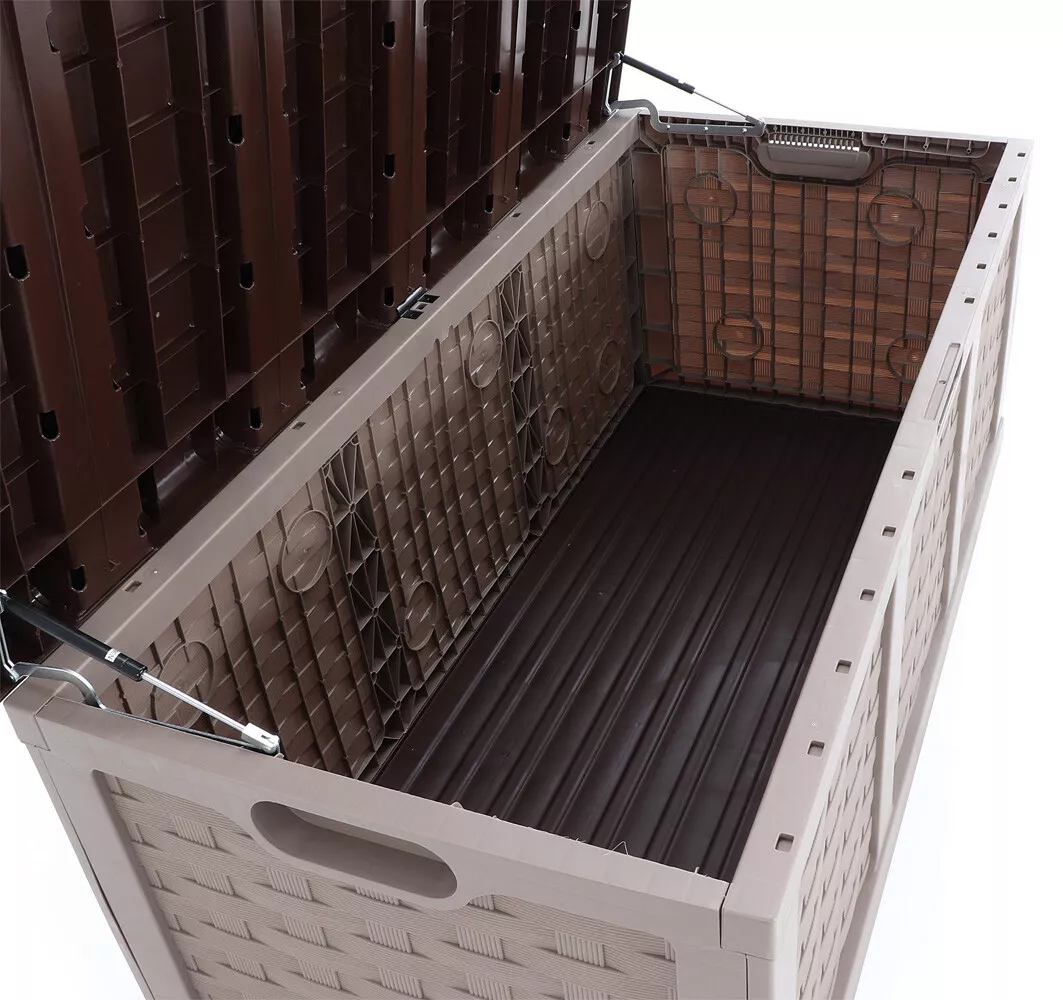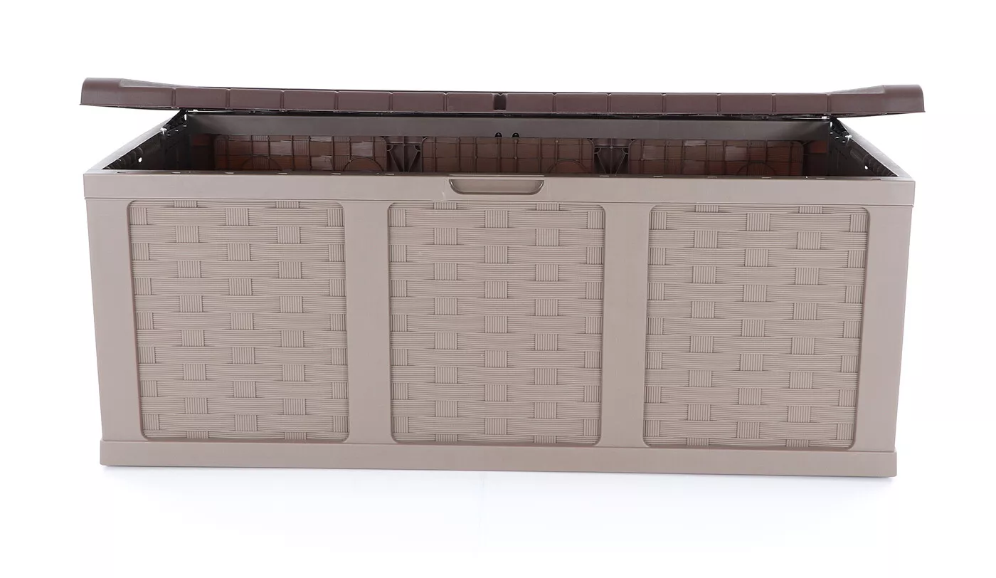 - Velmi praktický úložný box s velkým objemem, který je praktický na zahrady, terasy, balkóny, do garáže nebo zimní zahrady na uskladnění podušek ze zahradního nábytku, hraček apod. Lze jej umístit do exteriéru i interiéru. - Sedací víko pro 3 dospělé osoby