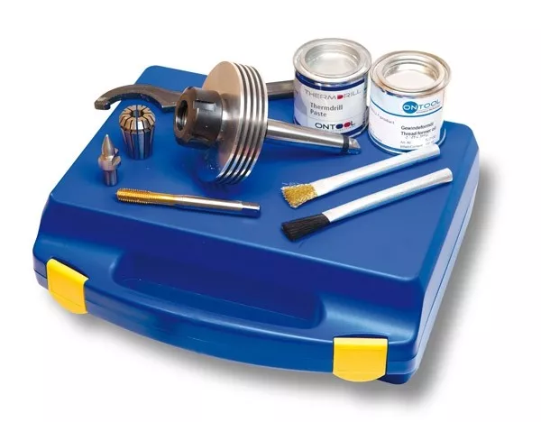 - Tato sada obsahuje veškeré nástroje k okamžitému vytváření otvorů tepelným tvářením a následnému závitování