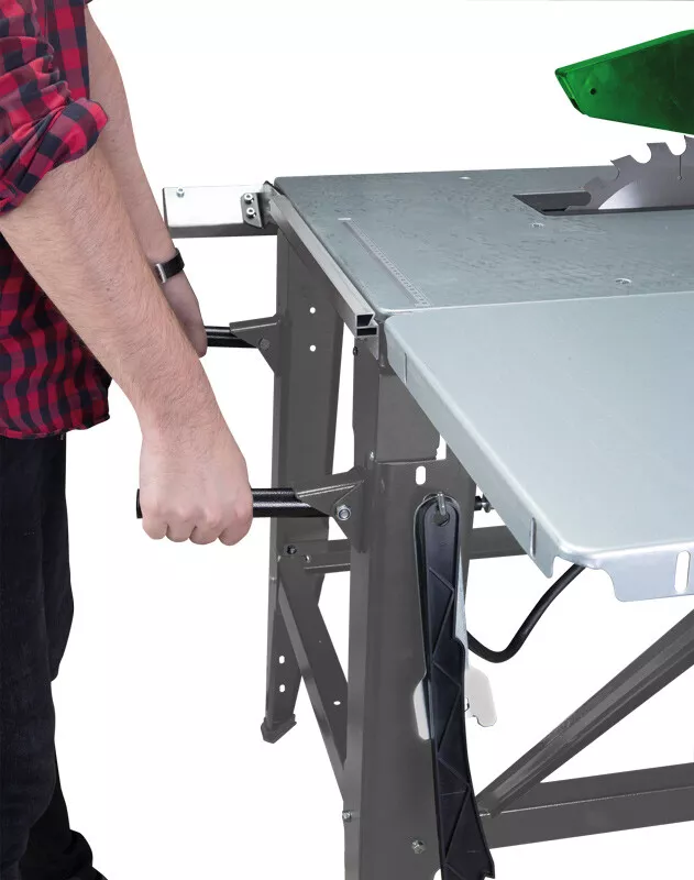 - Pilový kotouč lze výškově nastavit pomocí ruční kliky a stupnice