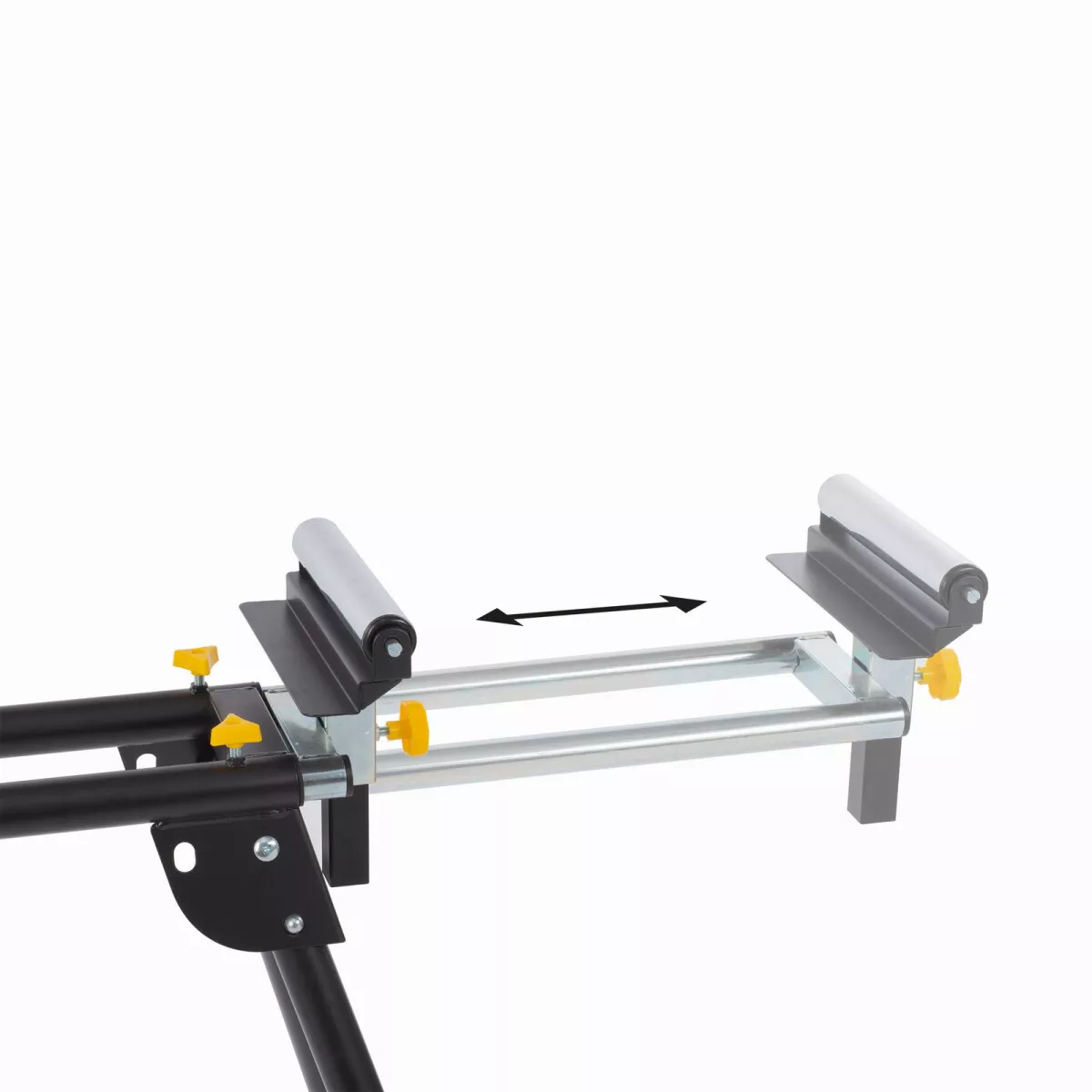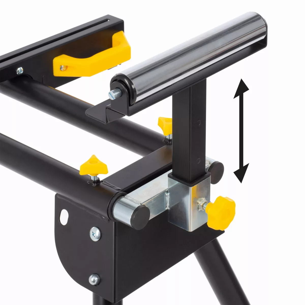 - Podpěry obrobků jsou výškově a šířkově nastavitelné, takže je lze dokonale přizpůsobit výšce stolní pily a obrobku.
