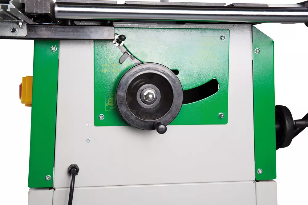 - Nastavení výšky pilového kotouče se provádí ručním kolem z přední strany obsluhy
