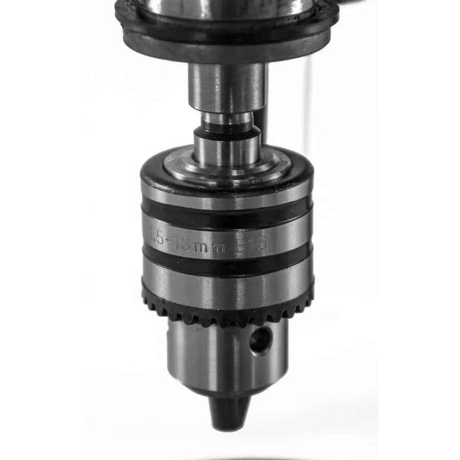 - 6 rychlostních stupňů otáčení vřetena (-> 600 - 2.600 min.-1; změna otáček manuálně pomocí řemenic), vrtací hlavička pro nástroje a vrtáky pr