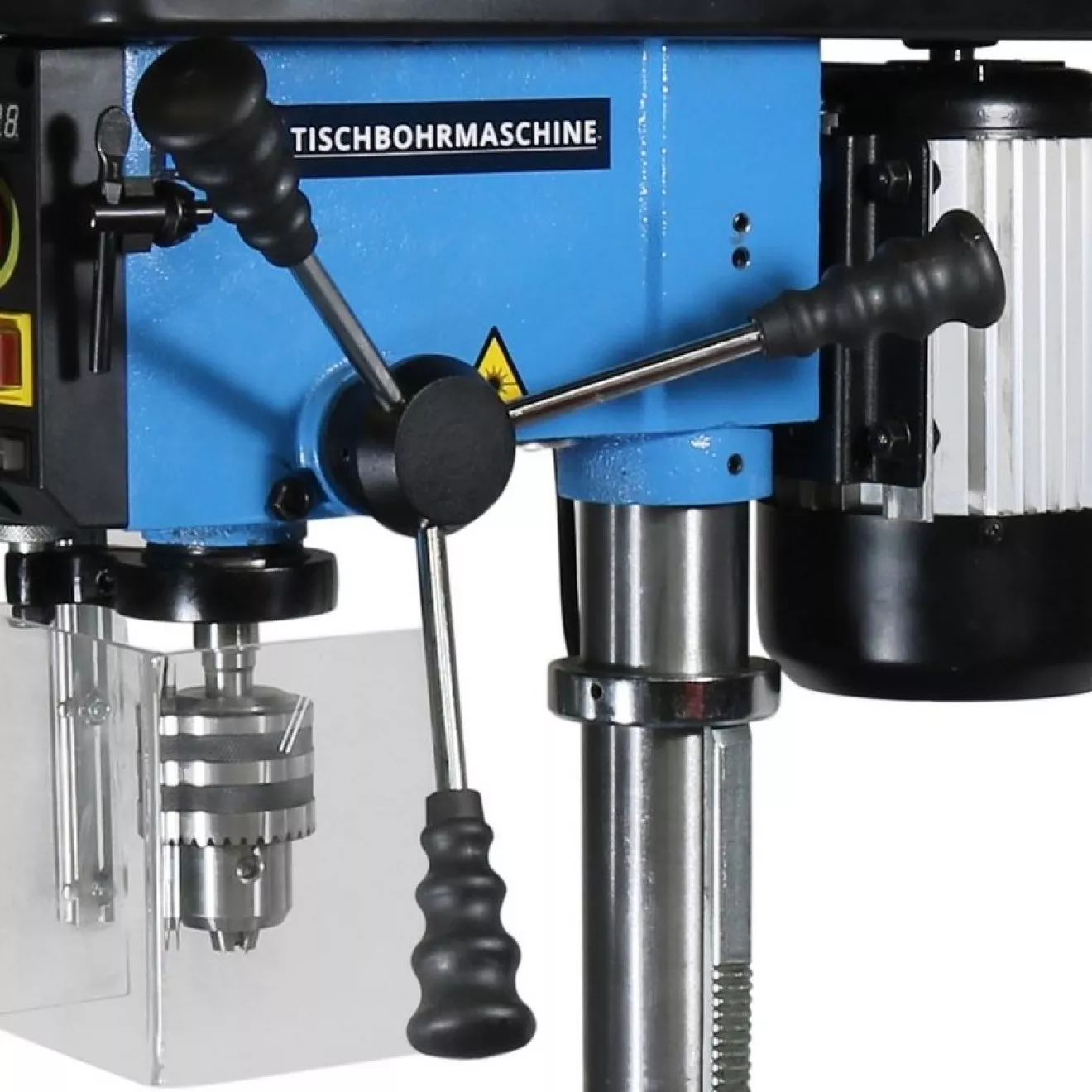 - Spolehlivá stolní vrtačka, určená k vrtání kovů, dřeva nebo plastů v podmínkách údržbářských/řemeslnických dílen. Variátorová převodovka (plynulá změna otáček vřetena; rozsah: 290 - 2.500 ot./min.; vč. zobrazení na digitálním displeji), laserový zaměřovací paprsek, LED osvětlení stolu. Sklíčidlo s ozubeným věncem pro nástroje a vrtáky Ø 3 - 16 mm (házivost: a lt; 0,02 mm), nastavení hloubky vrtání (1 - 50 mm; pro větší série obrobků), sklopný pracovní stůl (vrtání pod úhly; rozsah: ± 45°).
