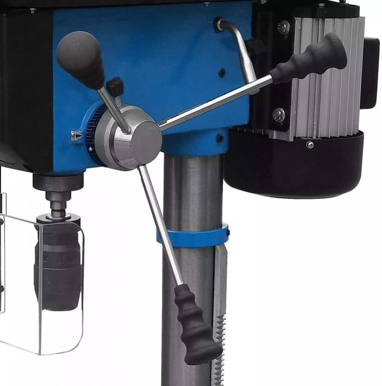 - 12 rychlostních stupňů otáčení vřetena (-> 210 - 2.500 ot./min.; změna otáček manuálně pomocí řemenic), rychloupínací sklíčidlo pro nástroje a vrtáky pr