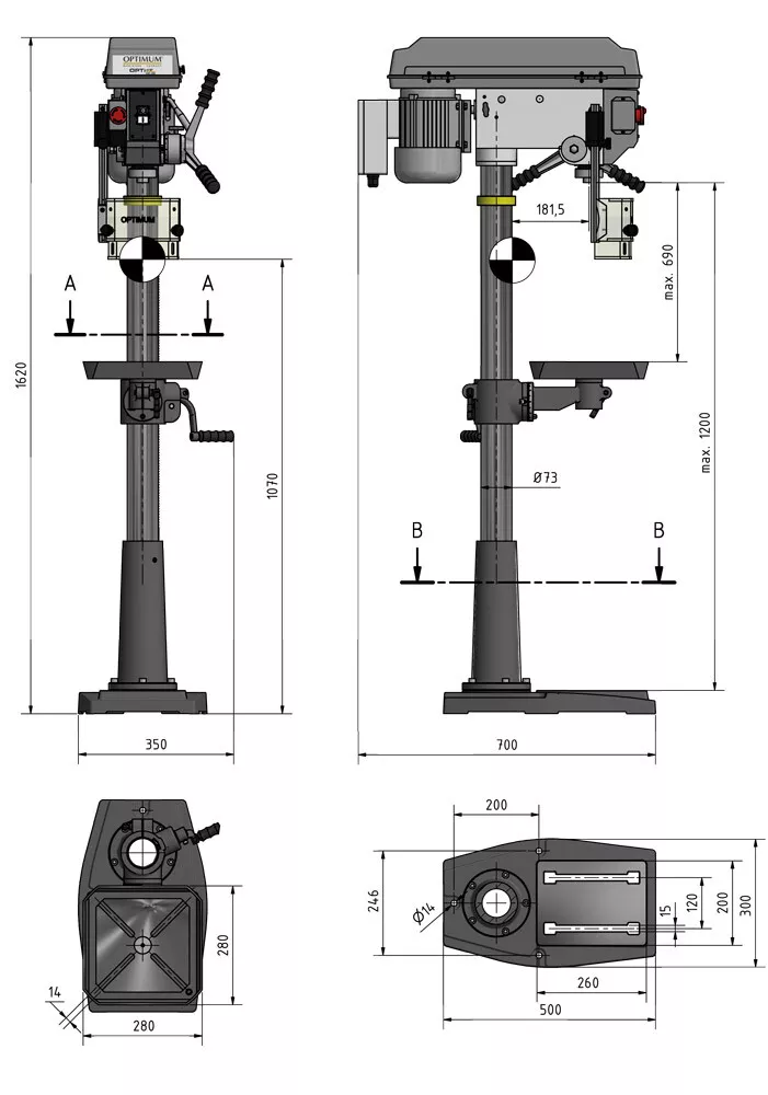 - Max. vzdálenost vřetene a základny: 1200 mm