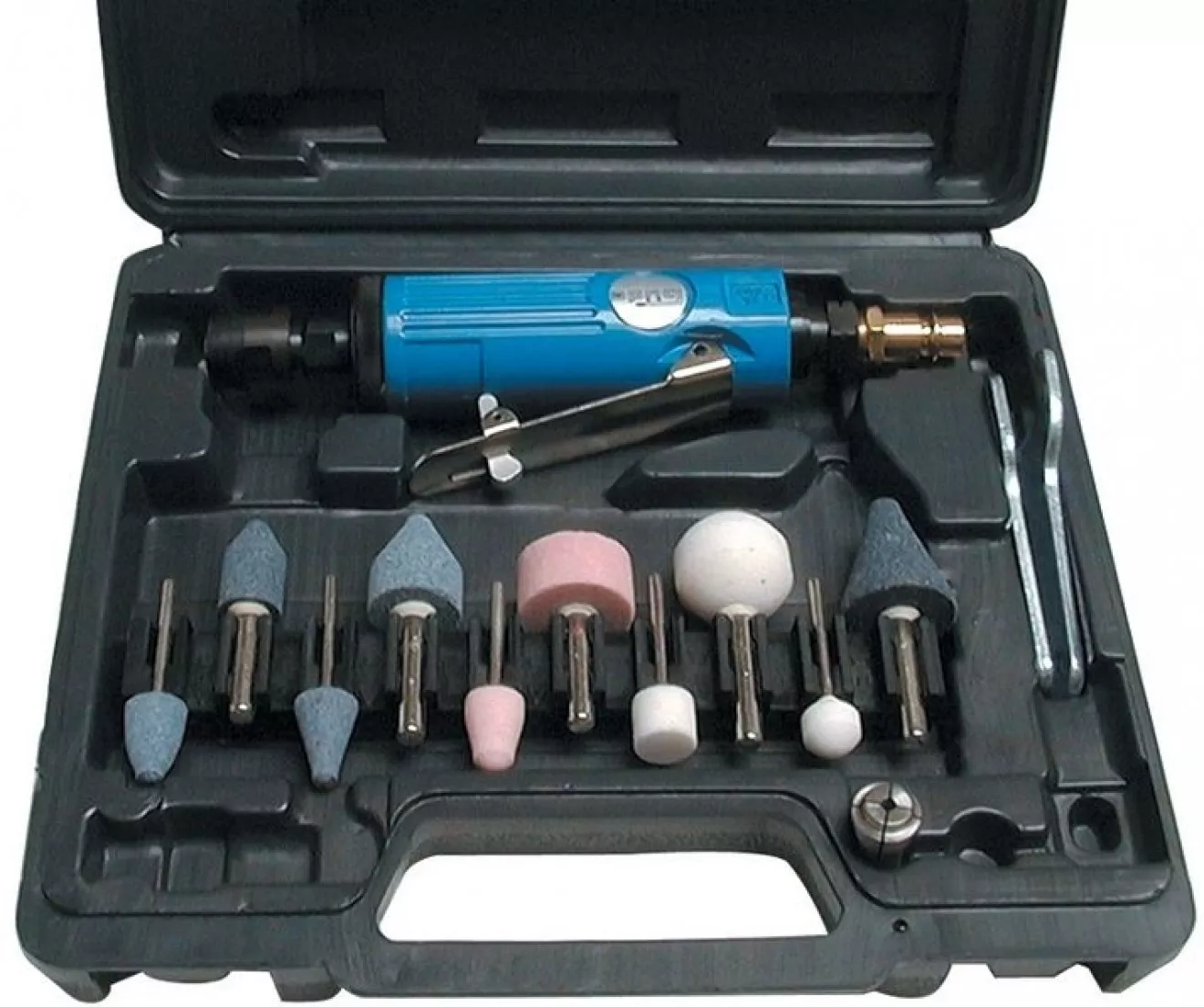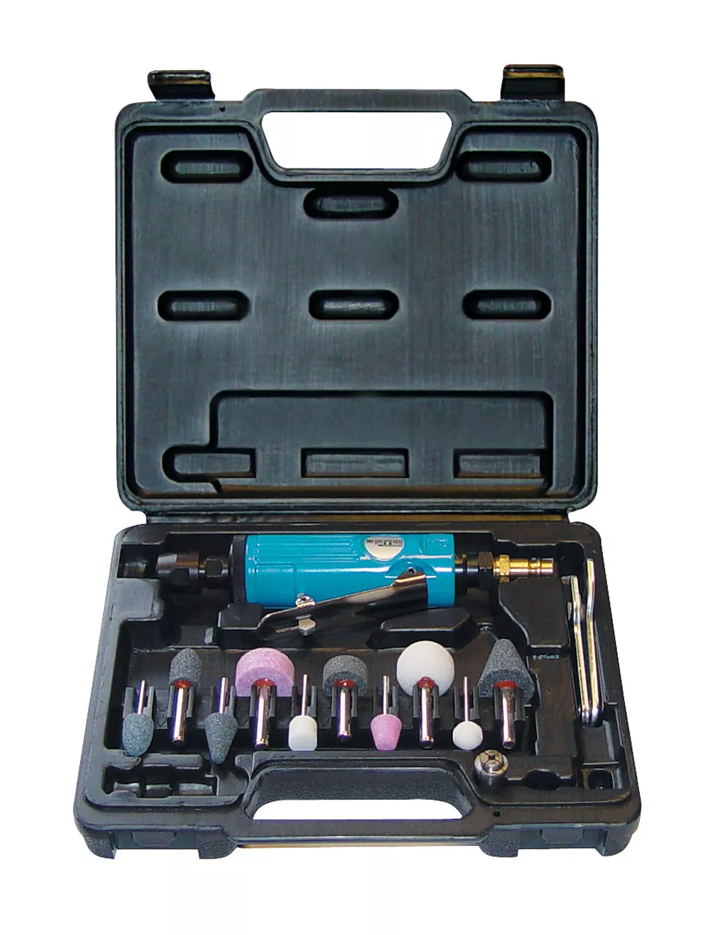 - Složení sady: brusné kolíky různých tvarů/zrnitostí (10), vsuvka 1/4'', montážní klíče, transportní plastový kufřík.