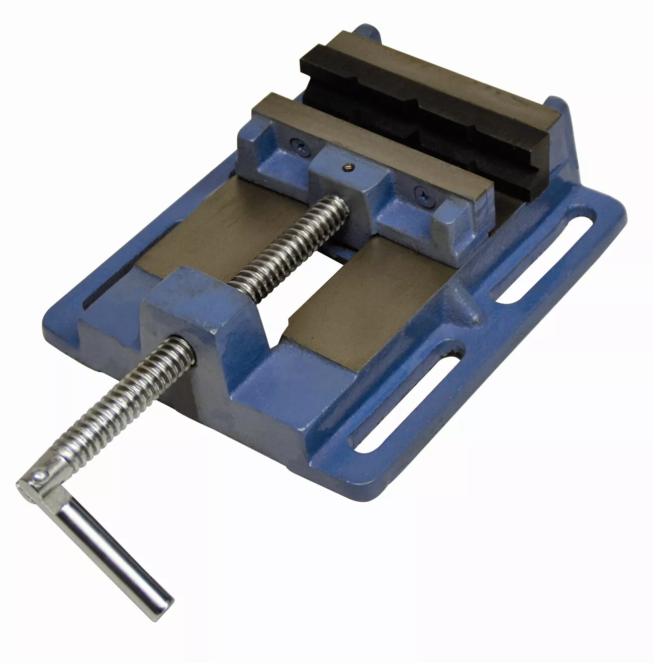 - Litinový strojní svěrák, určený k montáži na pracovní stoly stojanových/sloupových vrtaček.
