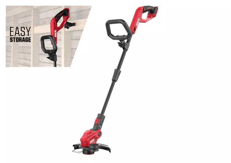 - „20V Max“ (18 V) SKIL 0230 je výkonná strunová sekačka s šířkou záběru 25 cm, se kterou půjde vyžínání a začišťování podél okrajů vždy hladce.