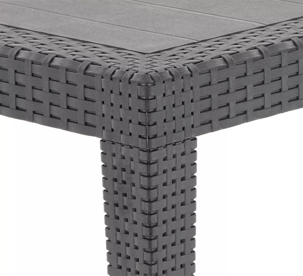 - Díky inovativnímu procesu vstřikování pomocí plynů se polypropylenové stoly stávají inteligentní alternativou k přirozenému pletenému materiálu z ratanu. Nábytek má originální povrchovou strukturu napodobující přírodní ratan. Ideální pro pohodlné venkovní posezení na vaší zahradě či terase. Vysoce odolné účinkům nepříznivých povětrnostních podmínek a UV záření.