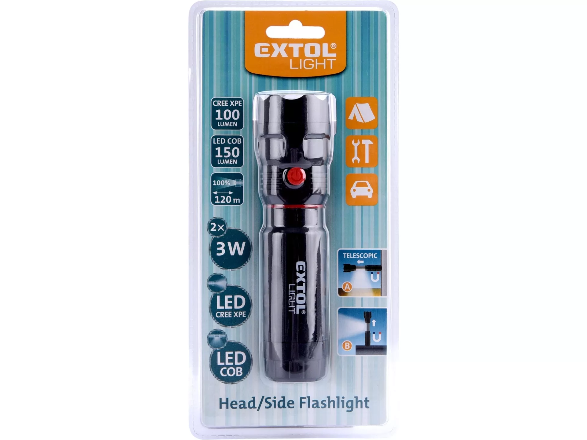 Svítilna 100lm cree + 150lm cob s magnetem, cree 3w xpe led, 3w cob EXTOL LIGHT 43117