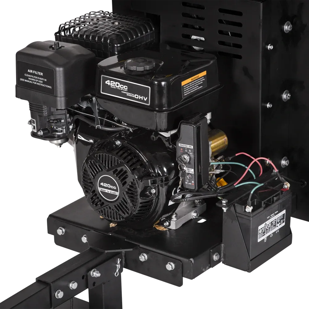 - Vysoce výkonný benzinový motor s výkonem 9 kW při 3600 otáčkách /min zajišťuje bezproblémové drcení listí a větví do průměru 100mm