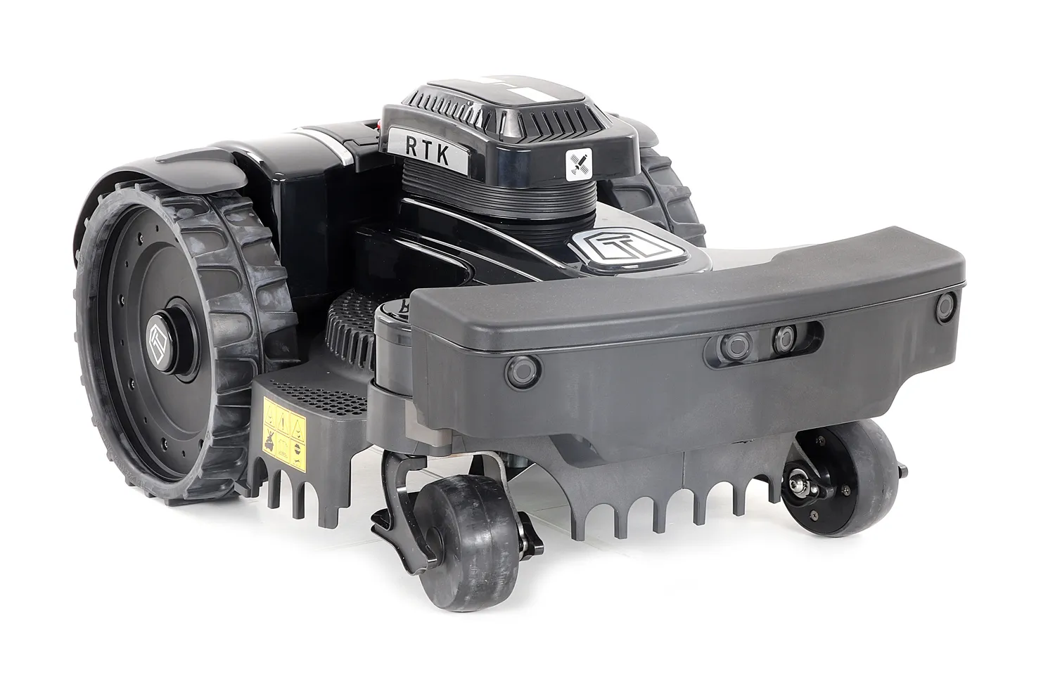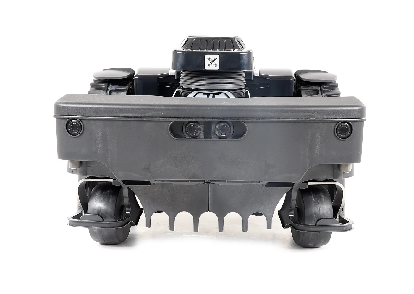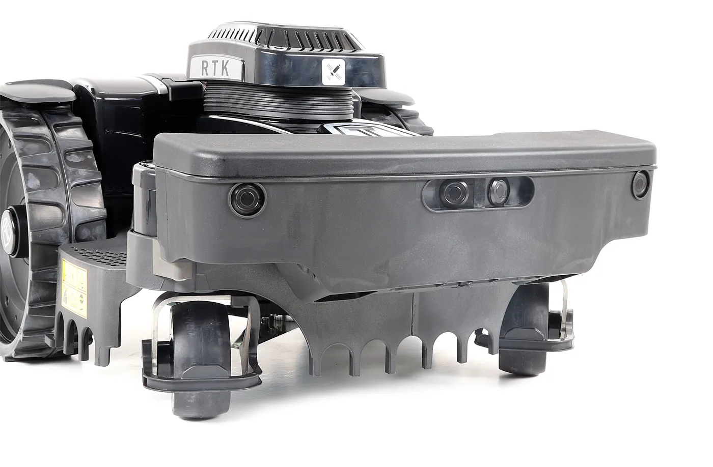 - Ultrasonické senzory: ultrazvukové senzory, které dokáží detekovat stojící i pohybující se překážky, hrany a okraje prostoru, díky nimž si robot za pomoci umělé inteligence vytvoří virtuální mapu pozemku a dokáže reagovat na jakoukoliv případnou nenadálou změnu. Čímž se stává bezpečnější a efektivnější.