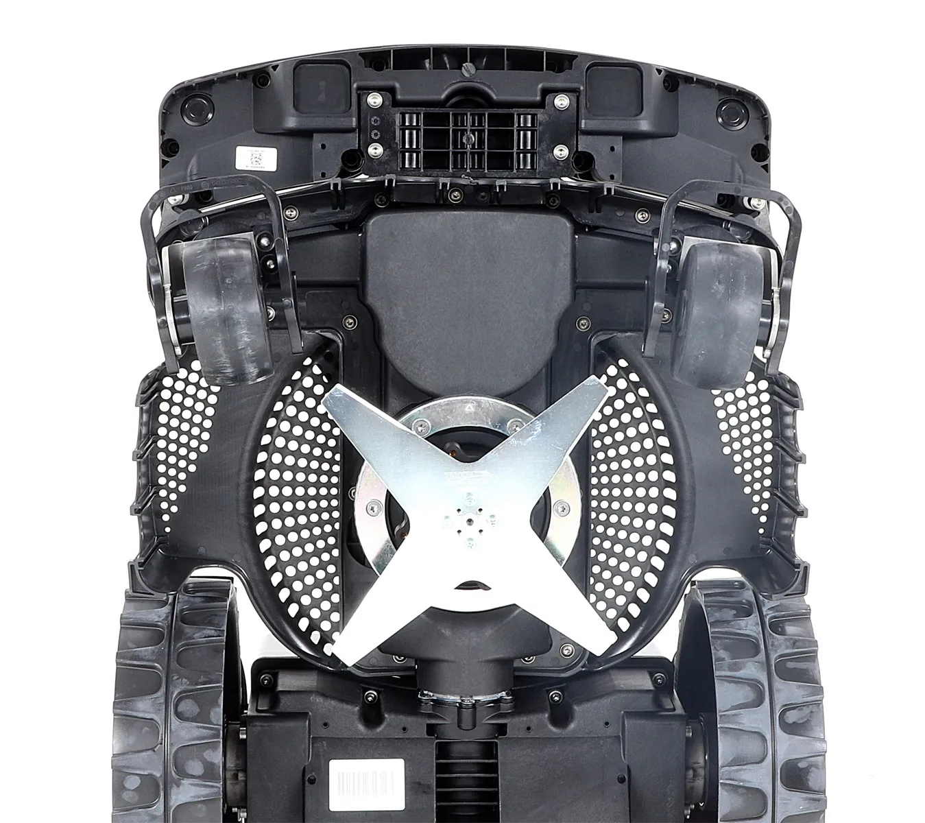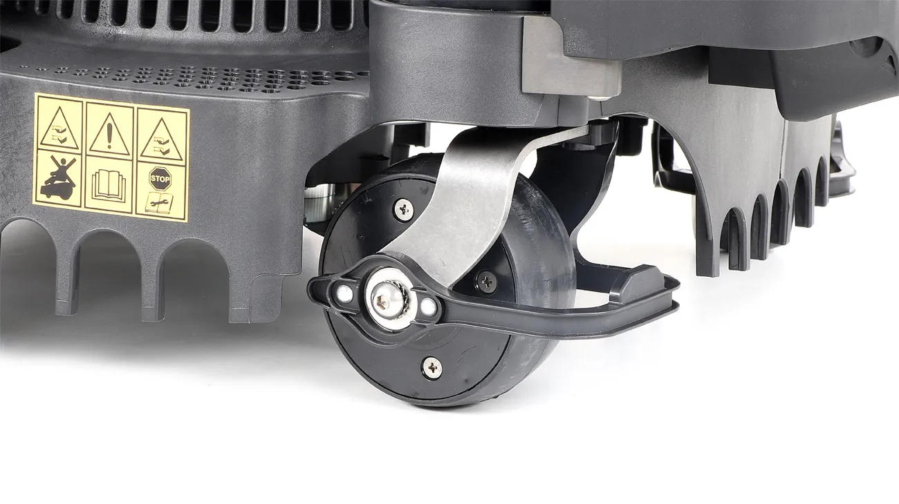 - Patentovaná přední kola: Pohybují se nezávisle na sobě a udržují vysoký sekací výkon i v nepravidelném a nerovném terénu.
