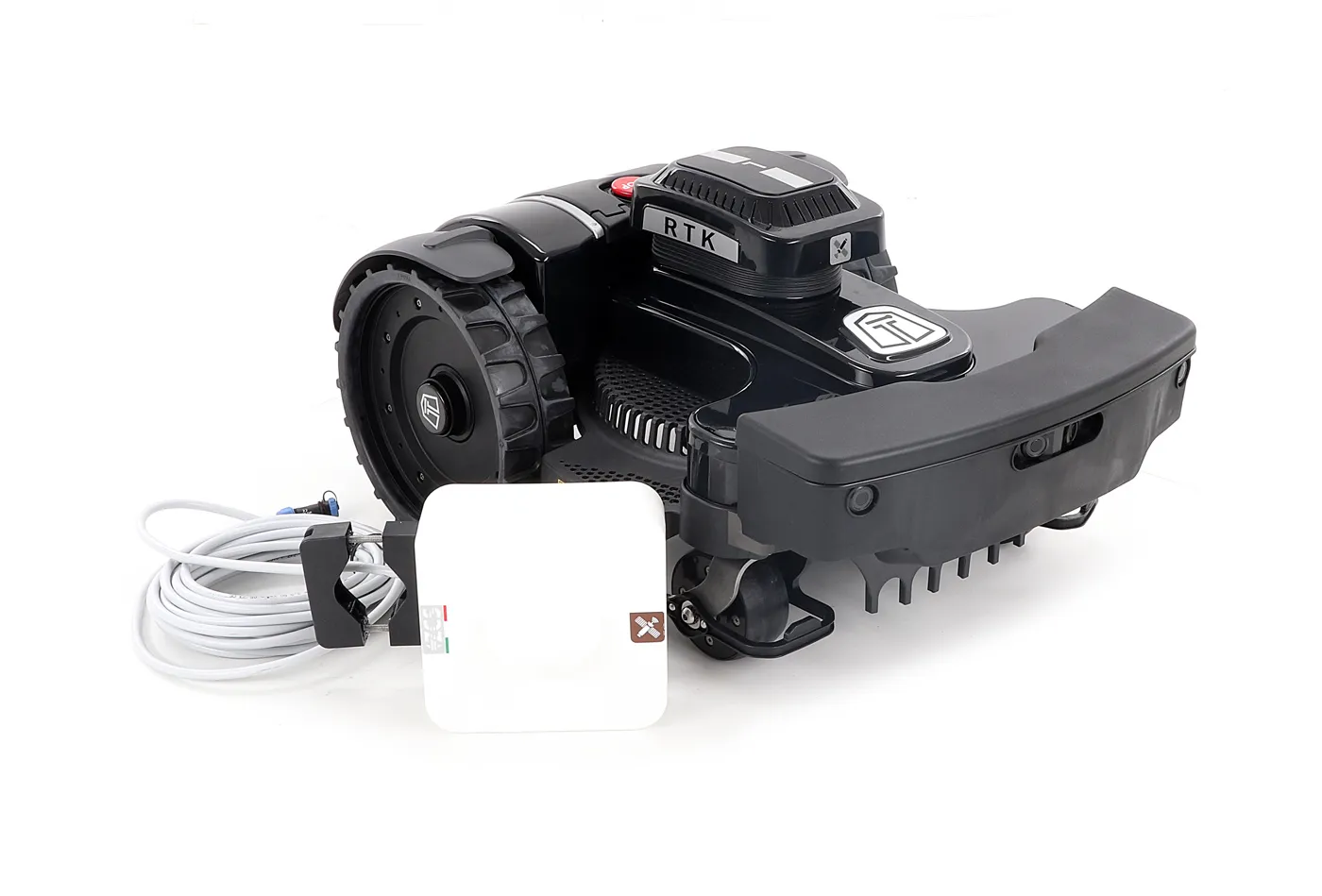 - Sekací systém RTK: Roboty již nainstalované s obvodovým kabelem sekají v paralelních pruzích podle signálu antény, s přesností a bezpečností zajištěnou integrací všech těchto technologií. To umožňuje lepší výkon, optimální sečení a delší životnost baterie.