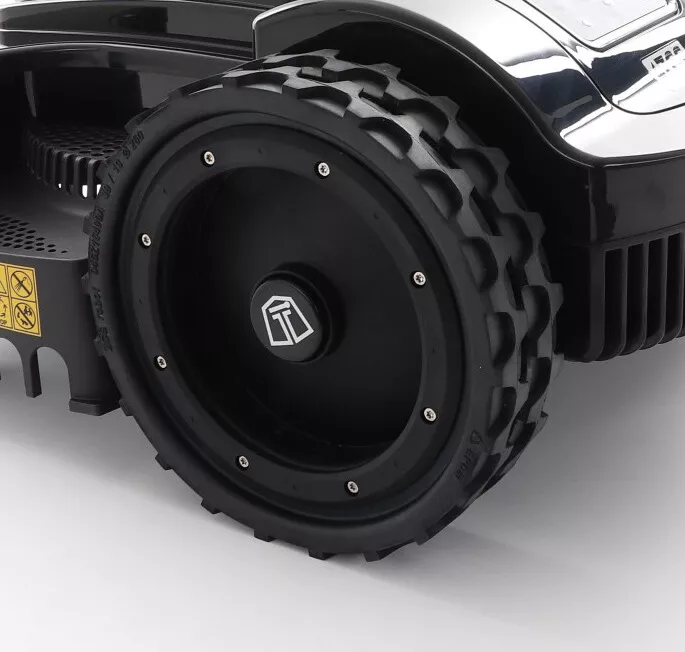 - Dvojité kolo bylo také navrženo tak, aby umožňovalo vyšší stupeň stability a přilnavosti při nižším tlaku na trávník. Dále je možné vložit ozubené kolo, které pomáha pohybu robota přes vlhká místa a na svazích. Na zahradě nebudou žádné překážky a vy si můžete naplno užívat svůj krásně upravený venkovní prostor.