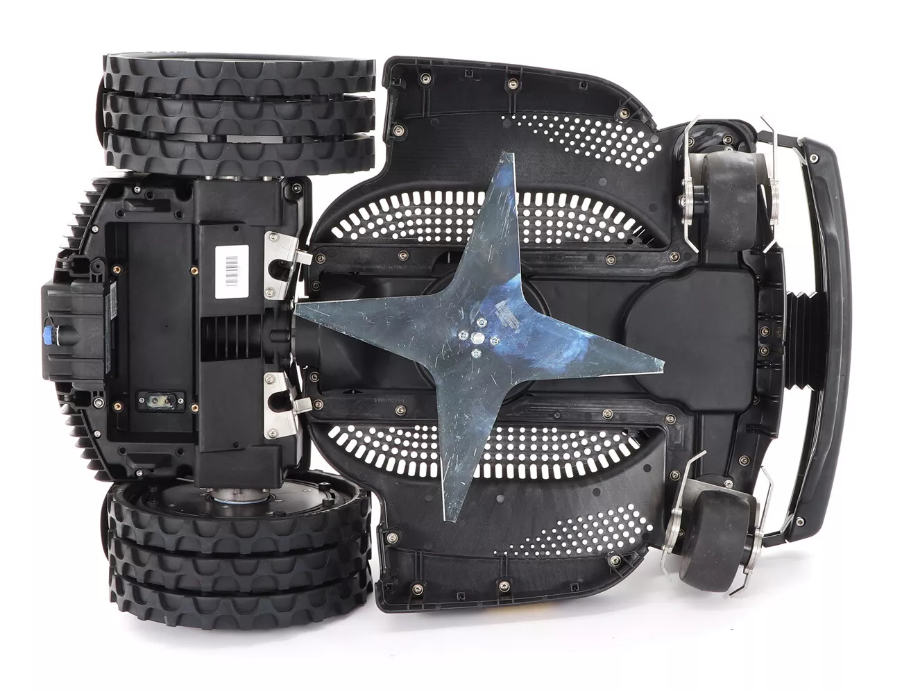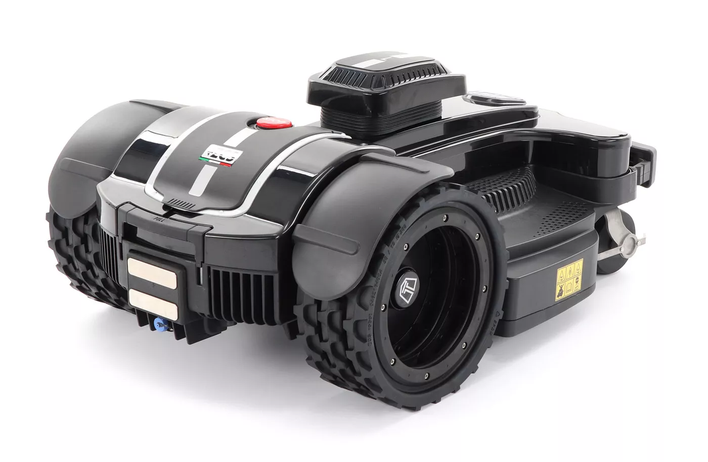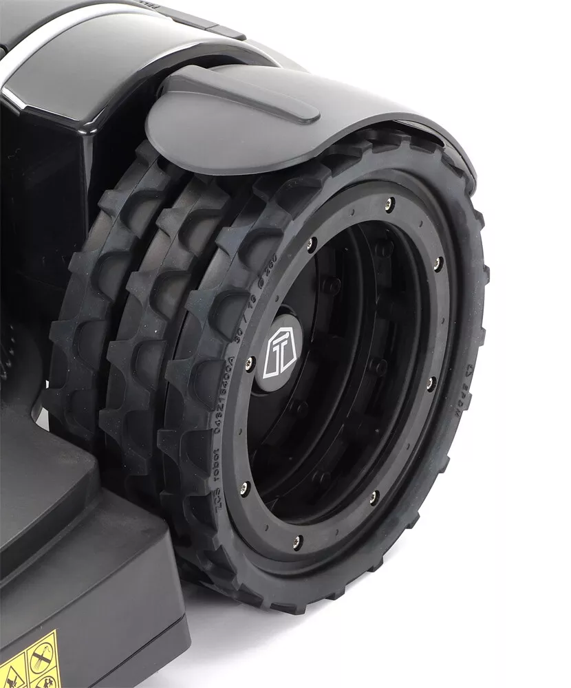 - Trojité kolo bylo také navrženo tak, aby umožňovalo vyšší stupeň stability a přilnavosti při nižším tlaku na trávník. Dále je možné vložit ozubené kolo, které pomáha pohybu robota přes vlhká místa a na svazích. Na zahradě nebudou žádné překážky a vy si můžete naplno užívat svůj krásně upravený venkovní prostor.