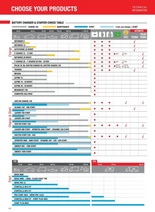 - SPRINTER 3000 START - Startovací zdroj je nabíječka baterií a startovací zařízení určené pro nabíjení baterie s tekutým elektrolytem (mokré). Umožní rychlé uvedení do provozu všech typů osobních automobilů - vhodné také pro dodávky a lehké nákladní automobily. Je vybaveno funkcí rychlého nabíjení a rychlého startu (boost). Na ovládacím panelu je ampérmetr. Tento zdroj disponuje ochranou proti přetížení a přepólování.