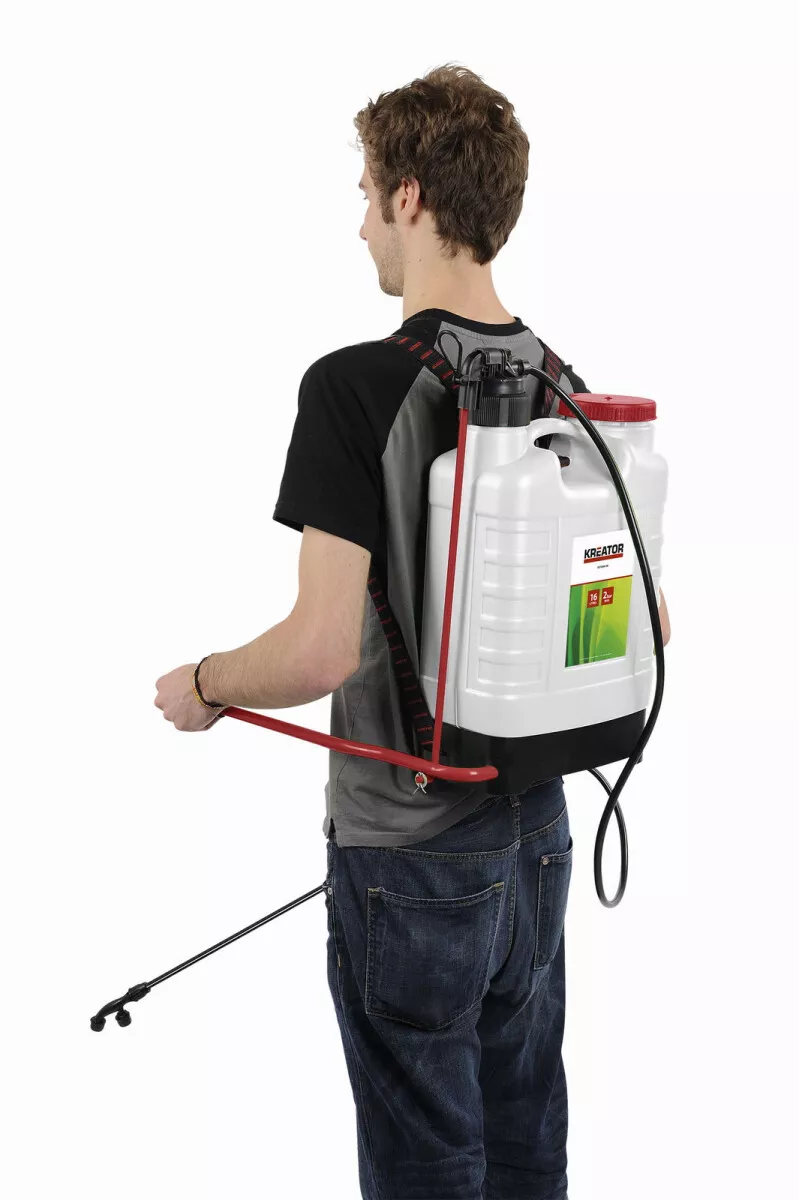 - Tento multifunkční zádový tlakový postřikovač KRTGR6816B od Kreator je vyroben z odolného bílého plastu a je ideální pro postřik rostlin ve středně velkých zahradách.