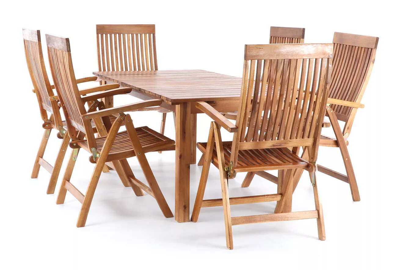 - Luxusní masivní dřevěný zahradní nábytek TORINO VeGA set 6 se skládá z 6-ti polohovatelných křesel a obdélníkového stolu z exotického, velice trvanlivého a tvrdého dřeva akácie.