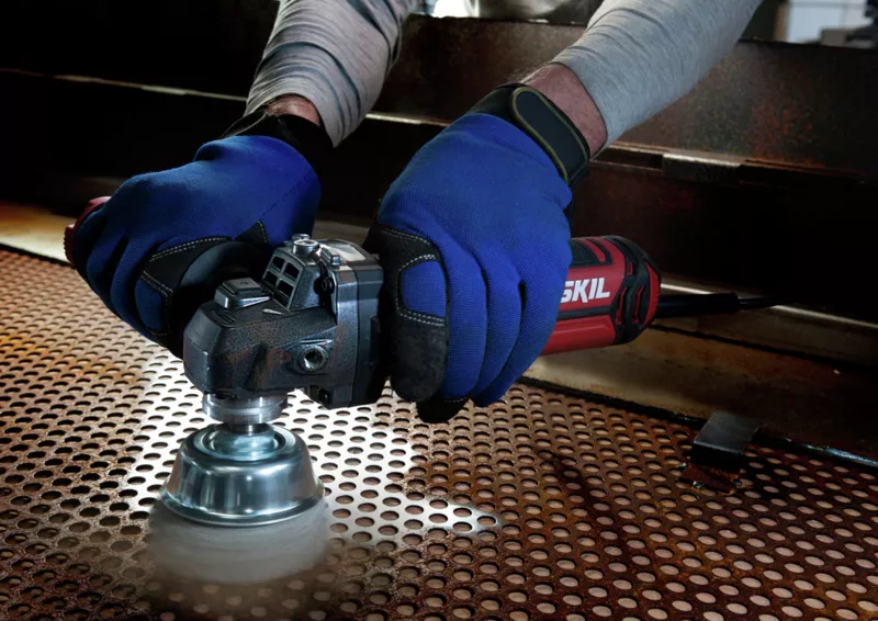- SKIL 9149 je výkonná úhlová bruska kompatibilní s kotouči o velikosti 115 mm.