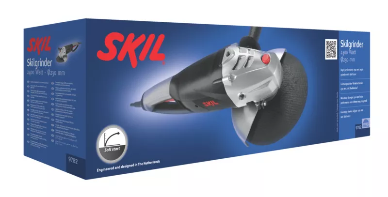 - Úhlová bruska Skil 9782 má mimořádně výkonný 2 400 W motor ideální pro nejnáročnější dělení a broušení.