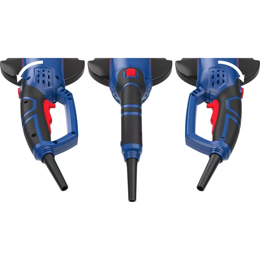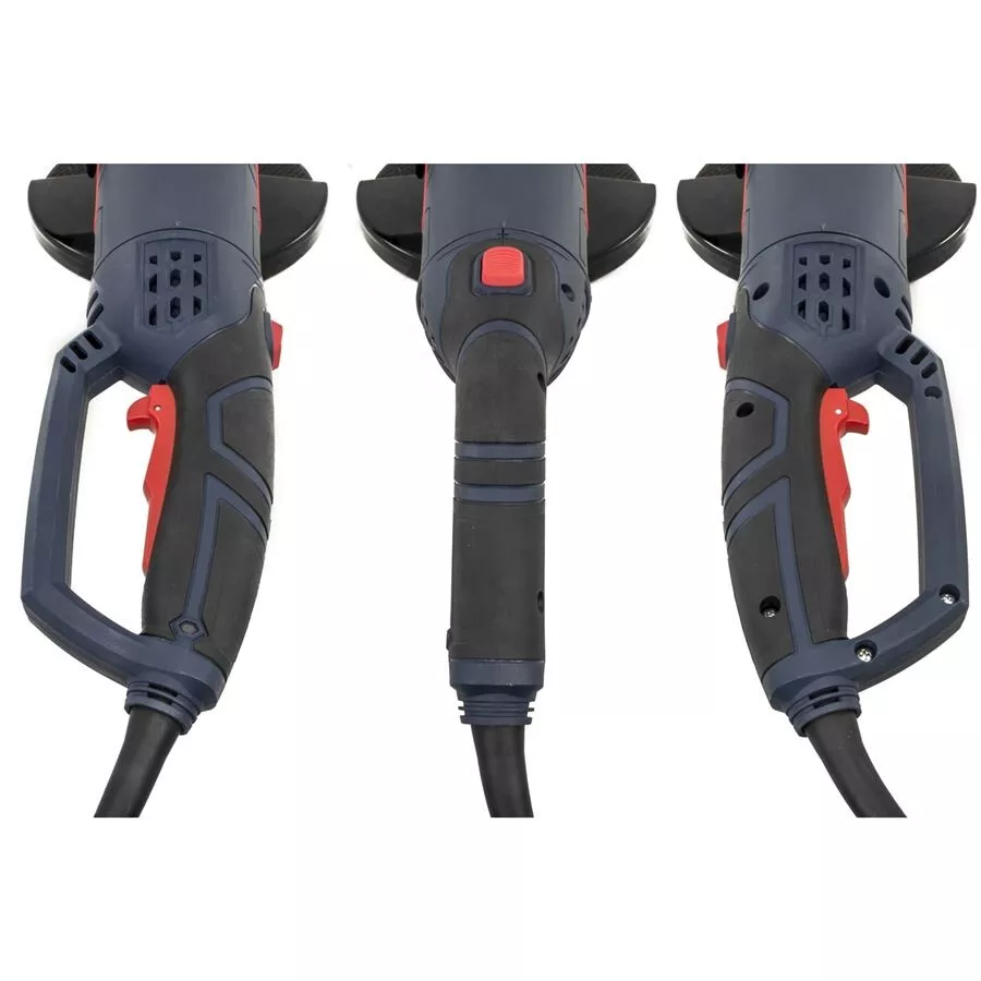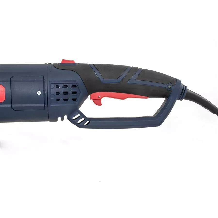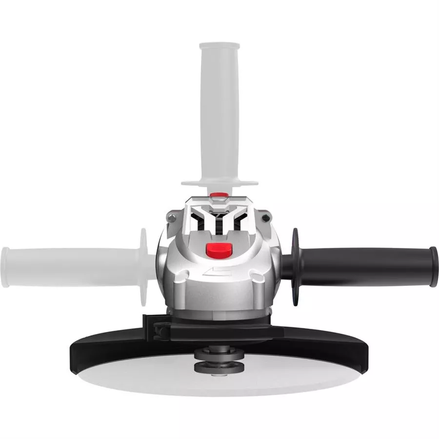 - Konstrukce: převodová skříň z hliníkové slitiny, ergonomicky tvarovaná rukojeť s protiskluzovými vložkami a indikátorem napětí (-> LED dioda), polohovatelná přídavná rukojeť (-> 3 x 90°), rychloupínací ochranný kryt.Příslušenství: kolíkový klíč, náhradní uhlíkové kartáče