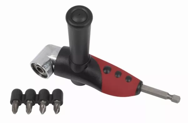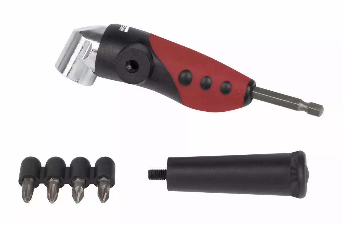 - Umístěte tento úhlový držák bitů na vrtačku / šroubovák a utáhněte a povolte šrouby a matice na téměř nedostupných místech a v úhlech 90 st.