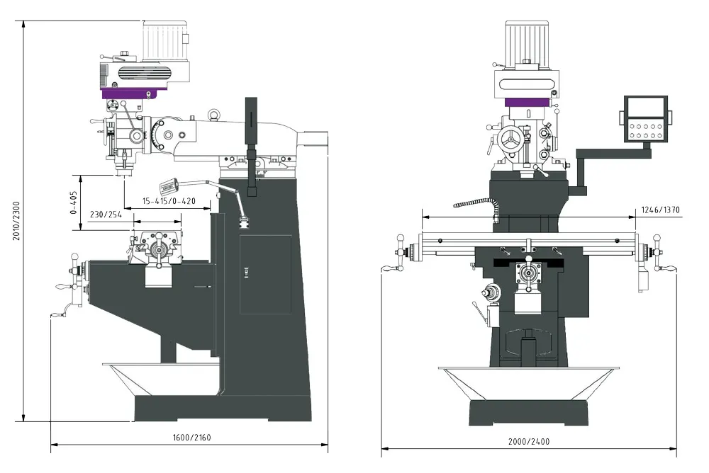 - Max. vzdálenost vřetene a stolu: 405 mm