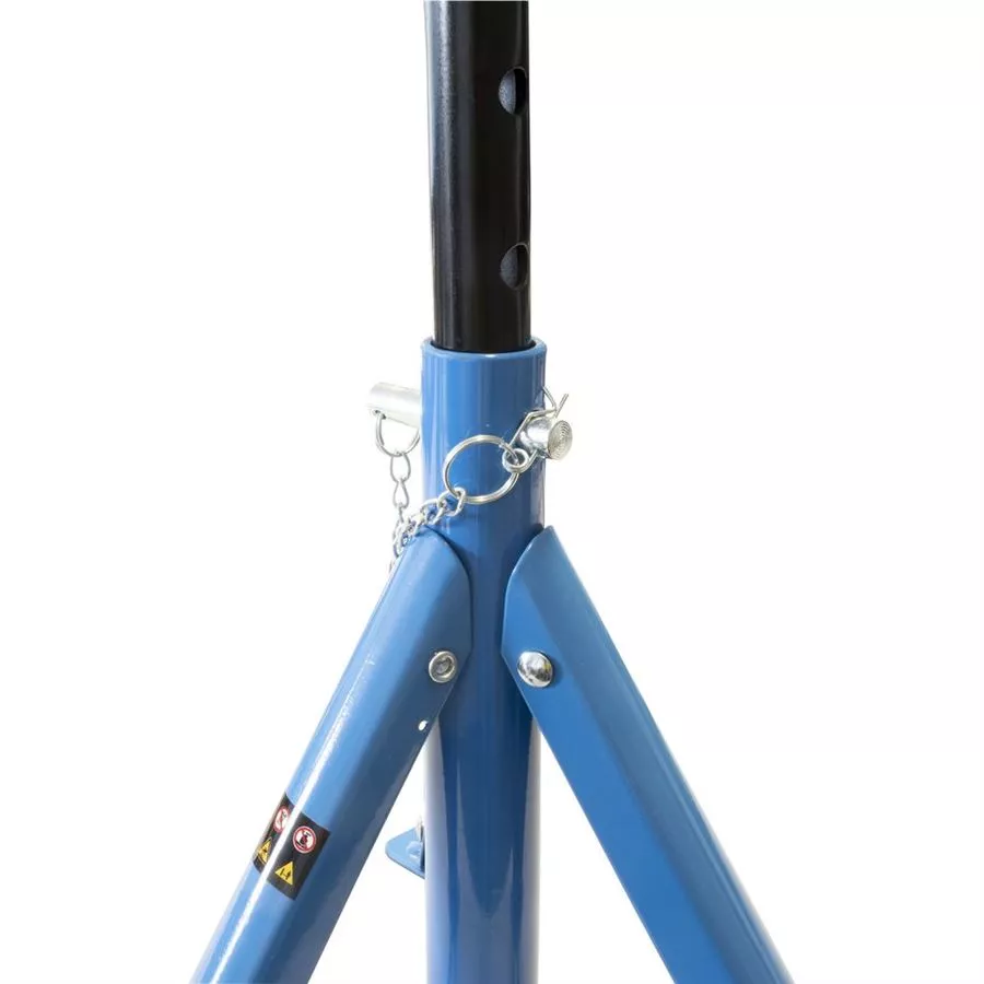 - Konstrukce: stabilní ocelové stojany, sklopné opěrné nohy, polohovací kolíky s řetízkem a závlačkou