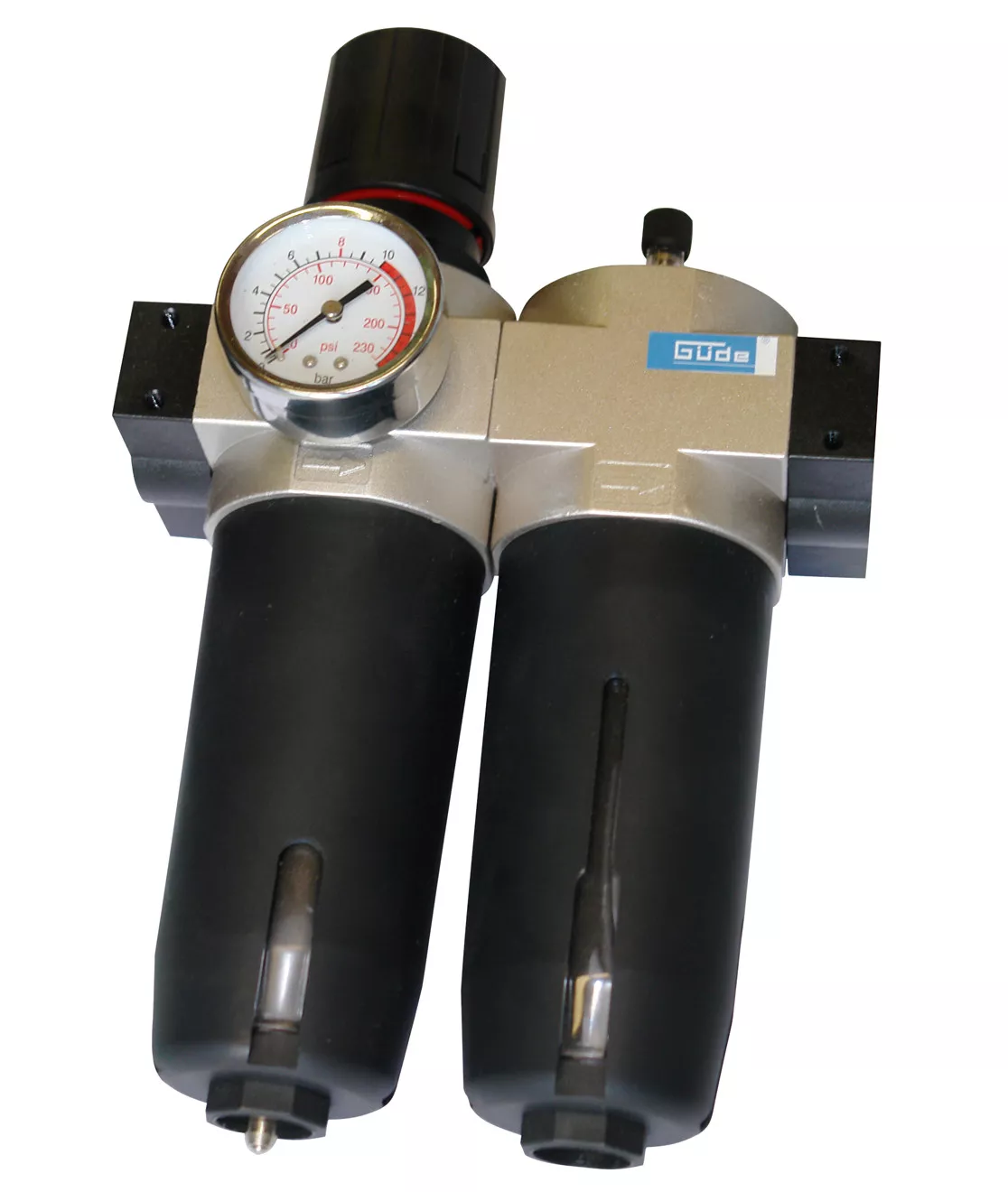 - Kompletní úpravné jednotky stlačeného vzduchu (-> redukční ventil s filtrem/mlhový přimazávač), určené k montáži na kompresor