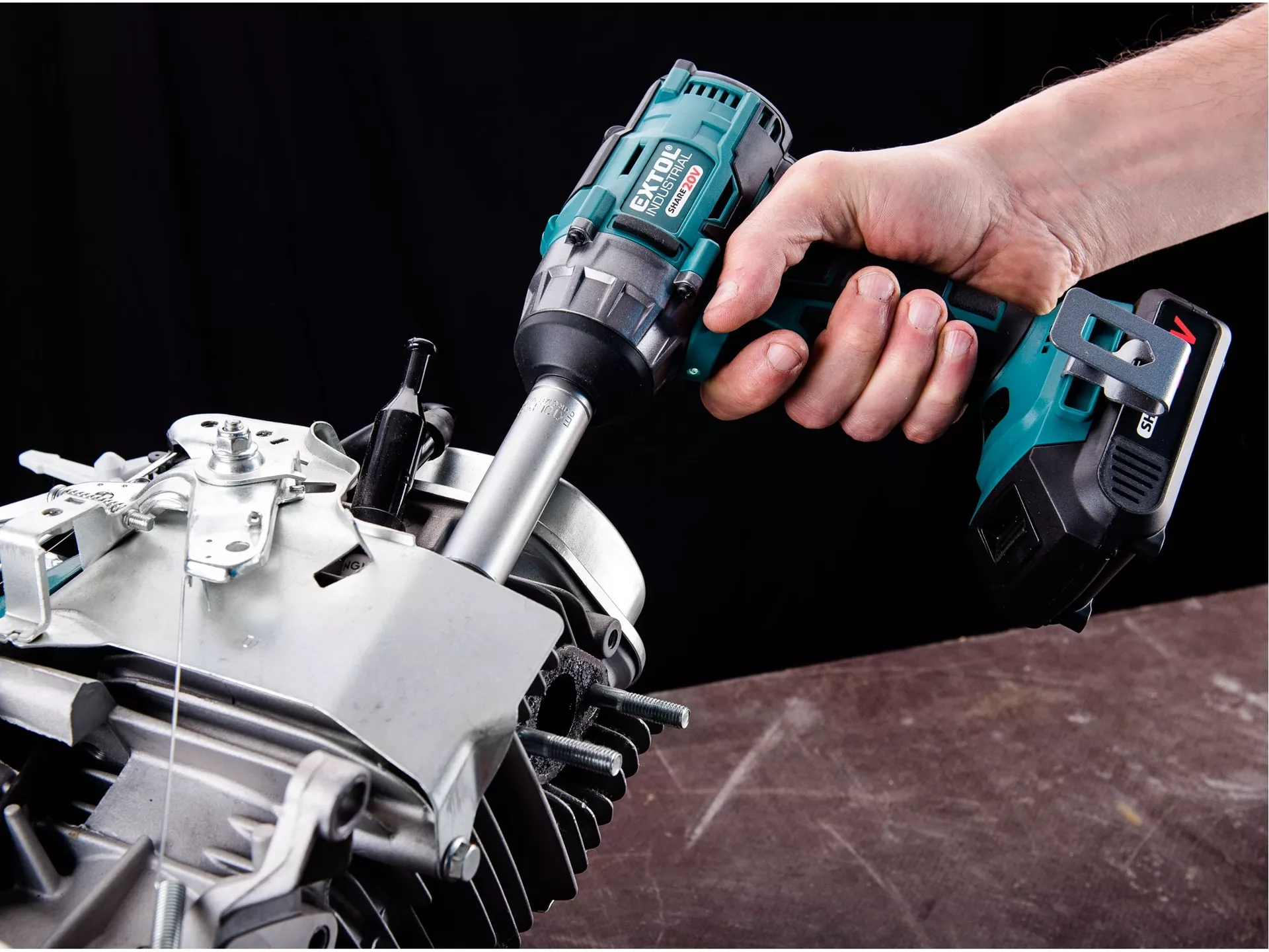- Lehký a výkonný rázový brushless aku utahovák s vysokým max. kroutícím momentem 250Nm Vám poskytuje výkon, který potřebujete k dokončení široké škály utahovacích operací – utahování a povolování šroubů. Utahovák je poháněná nejmodernějším „brushless" motorem. Tento nový typ motoru má vyšší životnost, je výkonnější a má menší spotřebu el. energie než klasické motory s uhlíkovými kartáči. Rázový moment zvyšuje sílu utahováku při šroubování a zároveň snižuje spotřebu baterie. Proto je při šroubování mnohem efektivnější než aku vrtačka a také zašroubuje více šroubů na jedno nabití baterie. Celokovová převodovka uložená v kovovém pouzdru zajišťuje bezchybný chod při i vysoké zátěži a přispívá k lepšímu odvodu tepla vznikajícího při práci. Pro běžnou práci dostačují jeden nebo dva 2000mAh akumulátory, které můžete rychle nabít v rychlonabíječce, pro náročnější nebo delší práci doporučujeme větší akumulátory s kapacitou 4000–8000mAh. Akumulátor lze použít ve všech typech nářadí řady EXTOL SHARE20V. Díky použité Li-ion technologii je ho možné kdykoliv dobíjet, aniž by se tím snižovala jeho kapacita. Li-ion akumulátor ztrácí energii vlivem samovybíjení velmi pomalu a vydrží dlouho nabitý a připravený k použití.