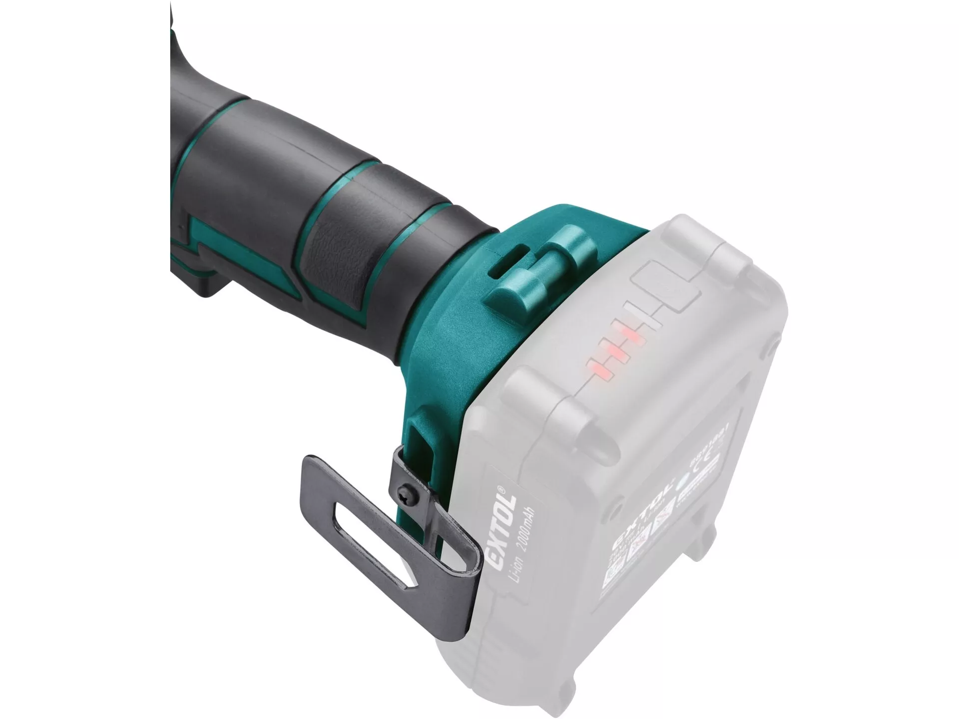 - Lehký a výkonný rázový brushless aku utahovák s vysokým max. kroutícím momentem 250Nm Vám poskytuje výkon, který potřebujete k dokončení široké škály utahovacích operací – utahování a povolování šroubů. Utahovák je poháněná nejmodernějším „brushless" motorem. Tento nový typ motoru má vyšší životnost, je výkonnější a má menší spotřebu el. energie než klasické motory s uhlíkovými kartáči. Rázový moment zvyšuje sílu utahováku při šroubování a zároveň snižuje spotřebu baterie. Proto je při šroubování mnohem efektivnější než aku vrtačka a také zašroubuje více šroubů na jedno nabití baterie. Celokovová převodovka uložená v kovovém pouzdru zajišťuje bezchybný chod při i vysoké zátěži a přispívá k lepšímu odvodu tepla vznikajícího při práci. Pro běžnou práci dostačují jeden nebo dva 2000mAh akumulátory, které můžete rychle nabít v rychlonabíječce, pro náročnější nebo delší práci doporučujeme větší akumulátory s kapacitou 4000–8000mAh. Akumulátor lze použít ve všech typech nářadí řady EXTOL SHARE20V. Díky použité Li-ion technologii je ho možné kdykoliv dobíjet, aniž by se tím snižovala jeho kapacita. Li-ion akumulátor ztrácí energii vlivem samovybíjení velmi pomalu a vydrží dlouho nabitý a připravený k použití.