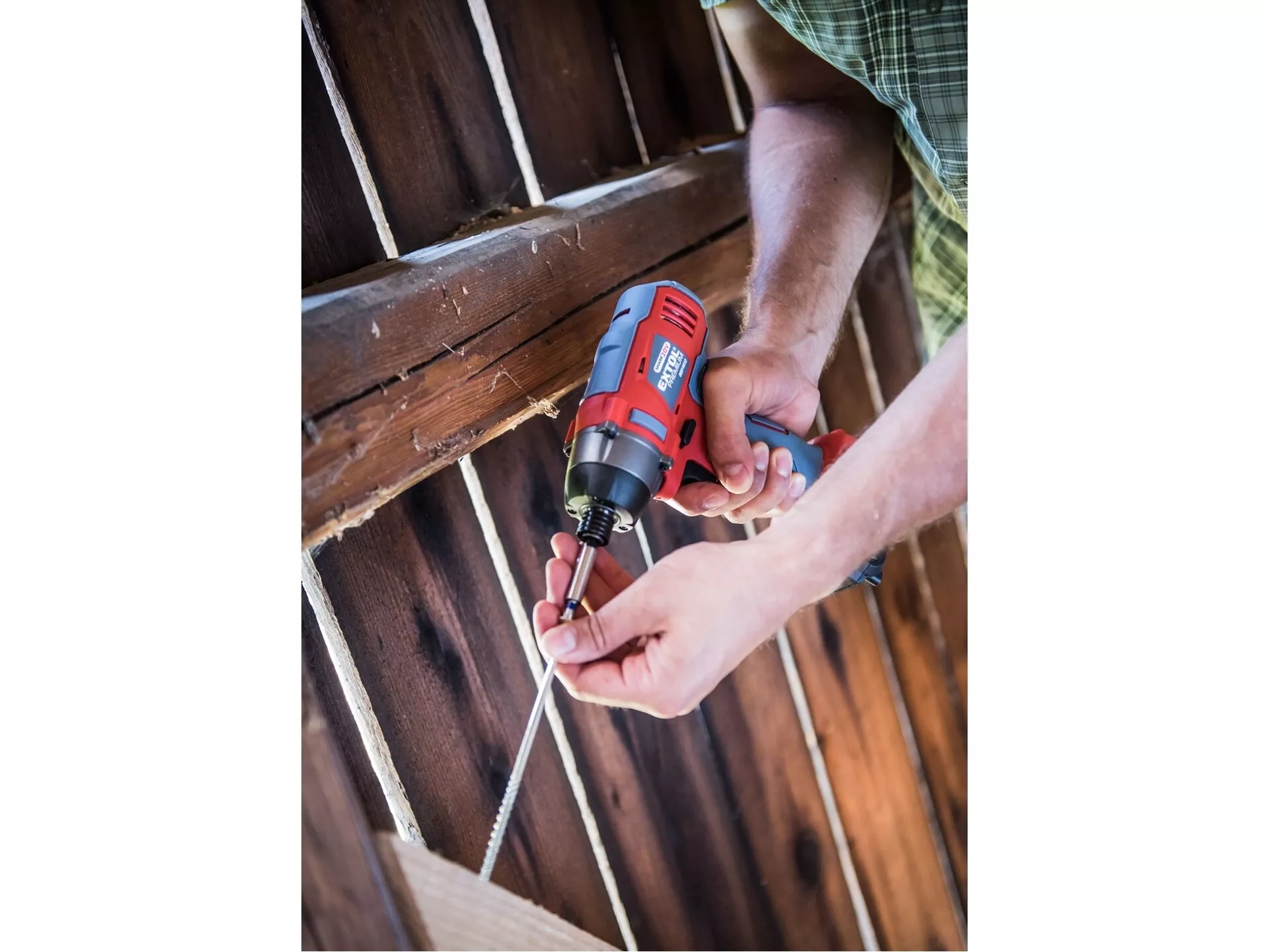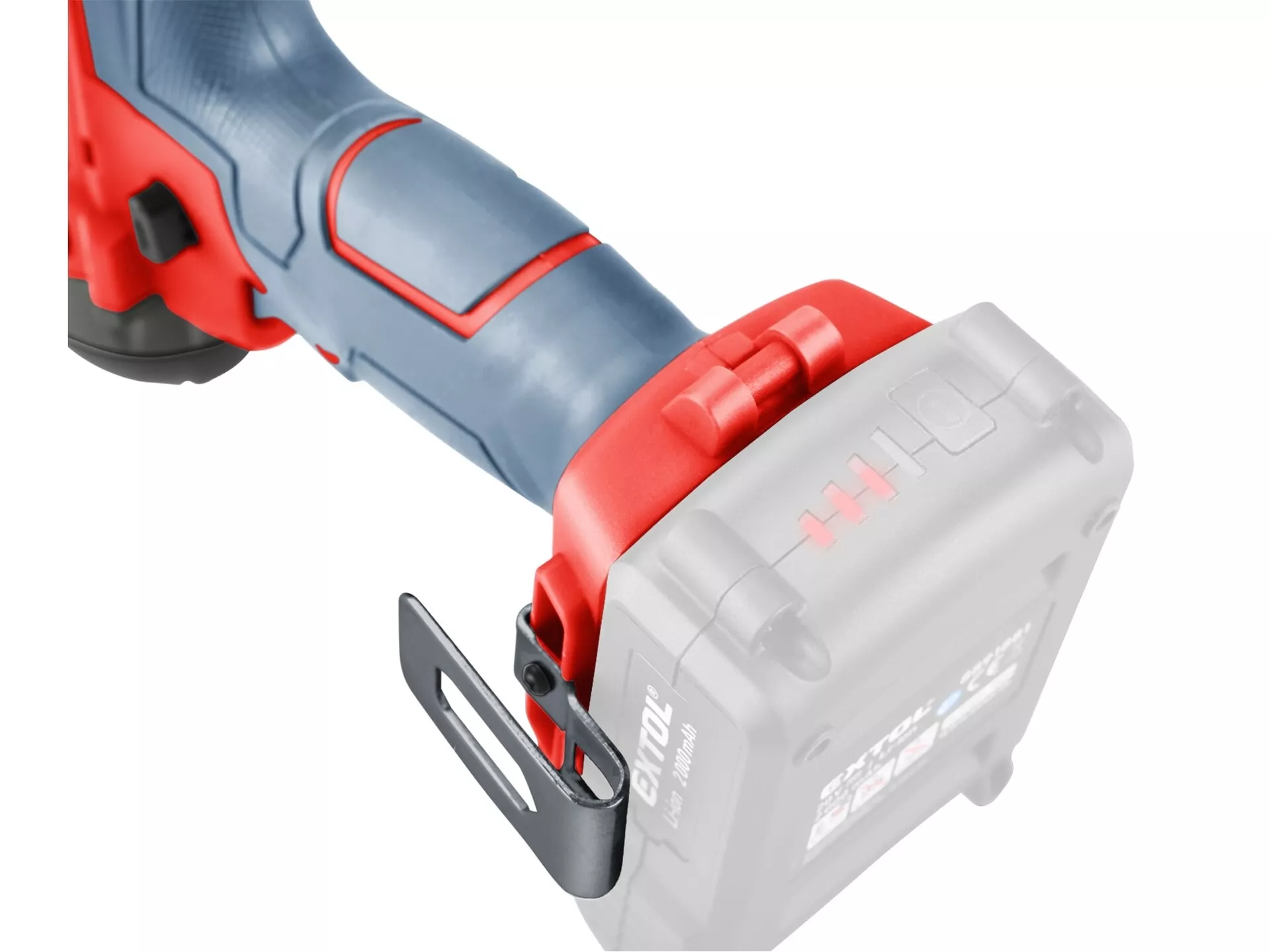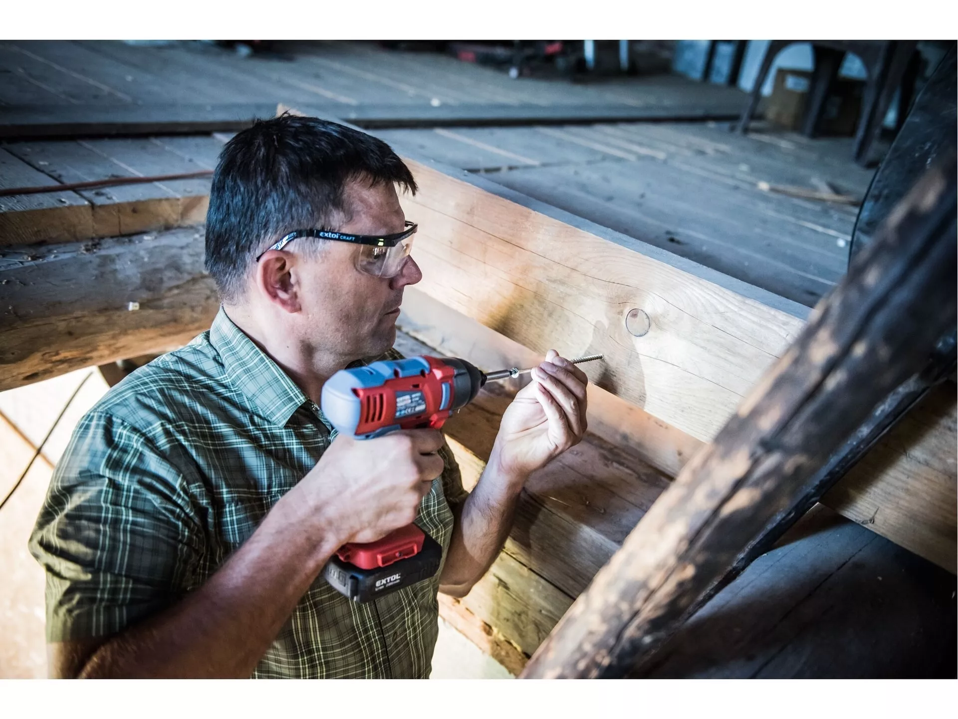 - Lehký a výkonný rázový aku utahovák s max. kroutícím momentem 180Nm Vám poskytuje výkon, který potřebujete při utahování a povolování vrutů. Rázový moment zvyšuje sílu utahováku při šroubování a zároveň snižuje spotřebu baterie při utahování. Proto je utahovák při šroubování mnohem efektivnější než aku vrtačka a také zašroubuje více vrutů na jedno nabití baterie. Dotažení vrutu usnadňuje automatické snížení rychlosti při zvýšení odporu a tření dotahovaného vrutu. Dotahování menších vrutů je díky vyšším otáčkám (2800 vs 1600/min) výrazně rychlejší než u aku vrtačky, proto je tento typ oblíbený při práci s dřevem. Hlava se šestihranným úchytem je vybavena zámkem pro bity a držáky bitů s drážkou. Celokovová převodovka zajišťuje bezchybný chod při i vysoké zátěži a přispívá k lepšímu odvodu tepla vznikajícího při práci. Utahovák je vybaven LED svítilnou, která osvětluje pracovní prostor při práci. Díky nízké hmotnosti 1,6kg s baterií lze utahovák používat i při delších pracích. Pro běžnou práci dostačují jeden nebo dva 2000mAh akumulátory, které můžete rychle nabít v rychlonabíječce, pro náročnější nebo delší práci doporučujeme větší akumulátory s kapacitou 4000–8000mAh. Akumulátor má indikátor nabití a lze použít ve všech typech nářadí řady EXTOL SHARE20V. Díky použité Li-ion technologii je ho možné kdykoliv dobíjet, aniž by se tím snižovala jeho kapacita. Li-ion akumulátor ztrácí energii vlivem samovybíjení velmi pomalu a vydrží dlouho nabitý a připravený k použití.