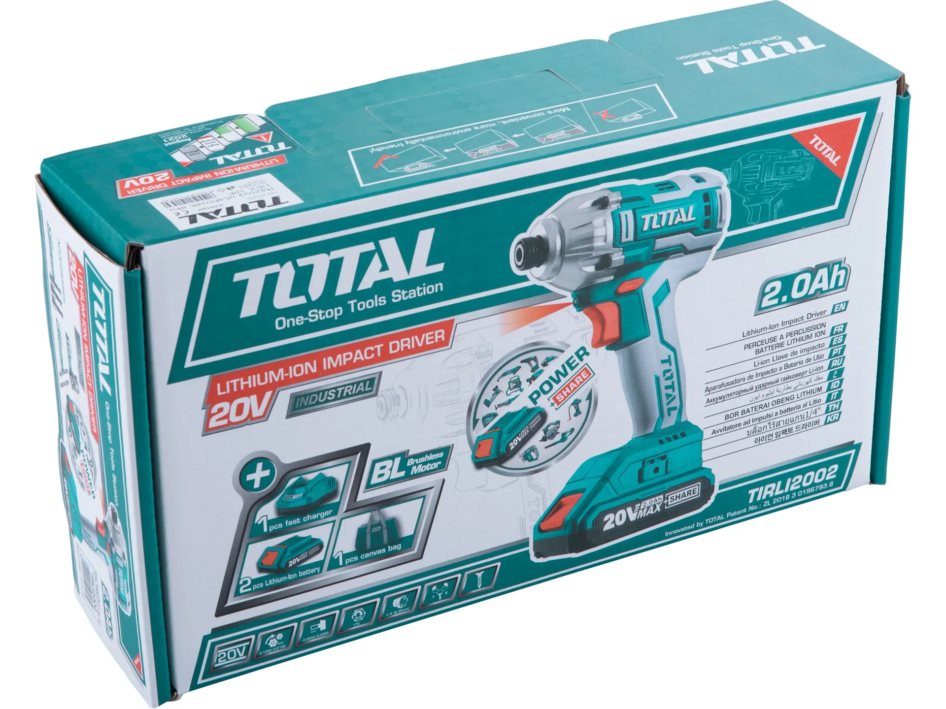 Utahovák rázový aku 1/4", brushless, 20v li-ion (2x), 2000mah, industrial TOTAL TIRLI2002