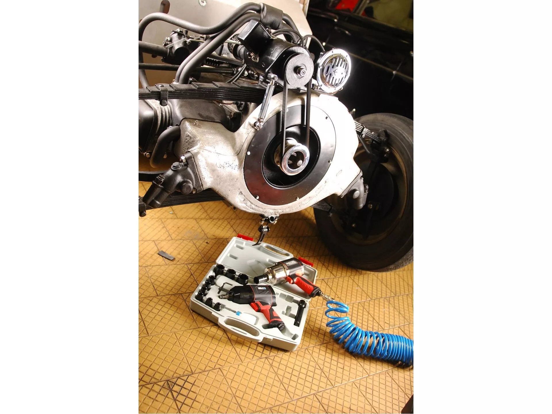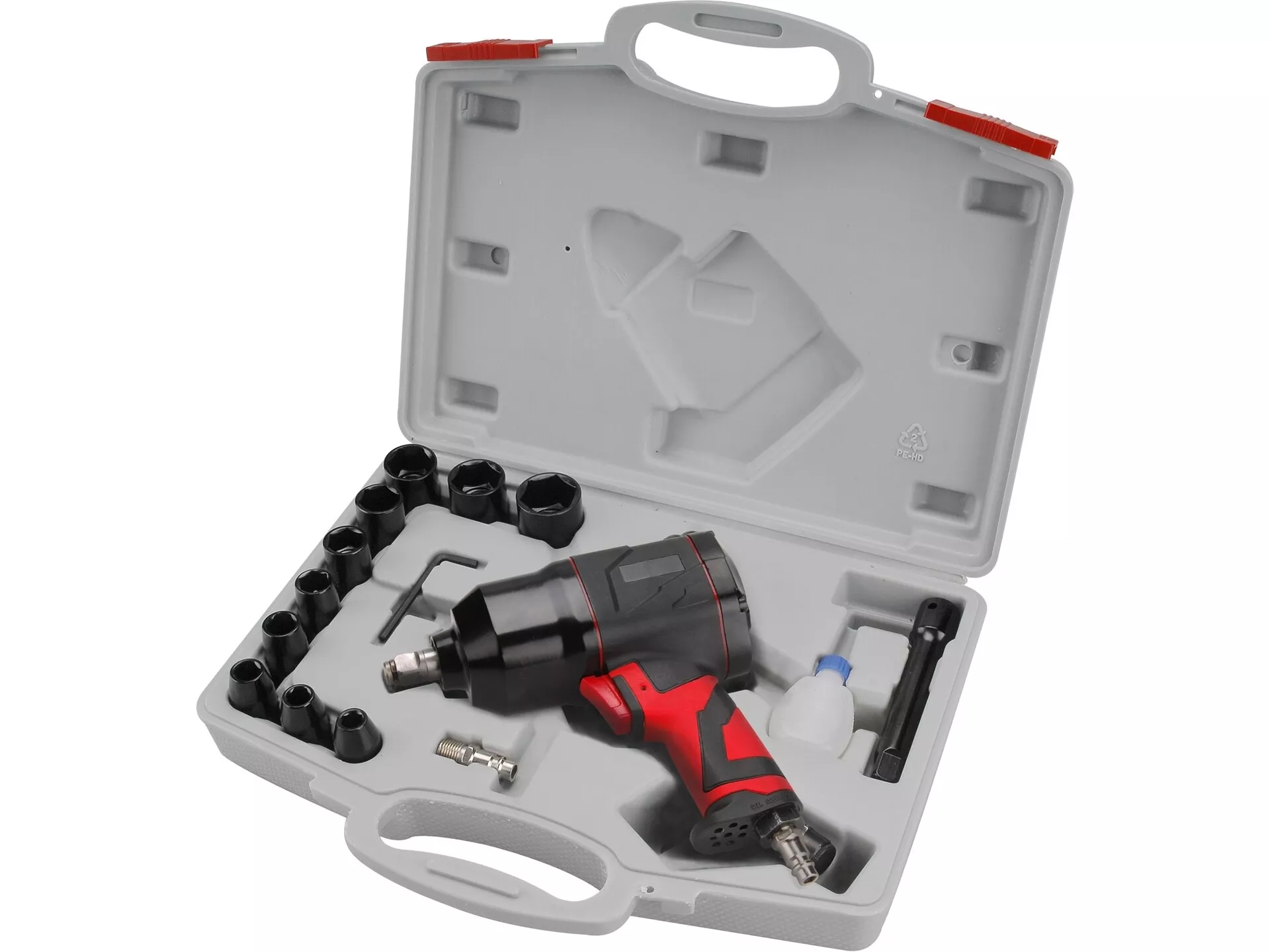 - Příslušenství: nástrčné hlavice 9-10-11-13-14-17-19-22-24-27mm, nástavec 125mm, imbusový klíč 4mm, olejnička, konektor pro rychlospojku, přepravní kufr