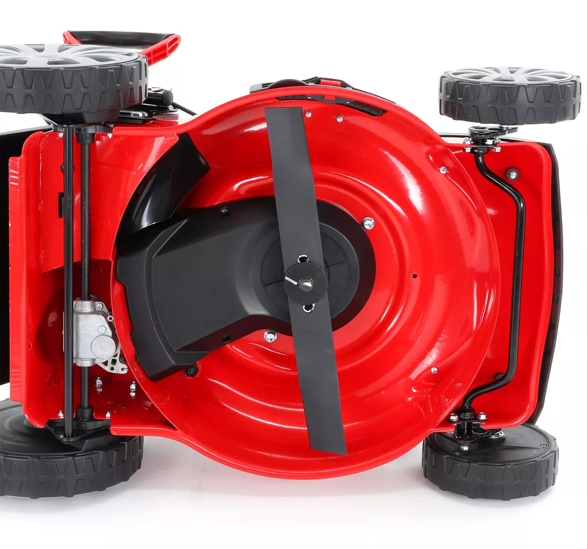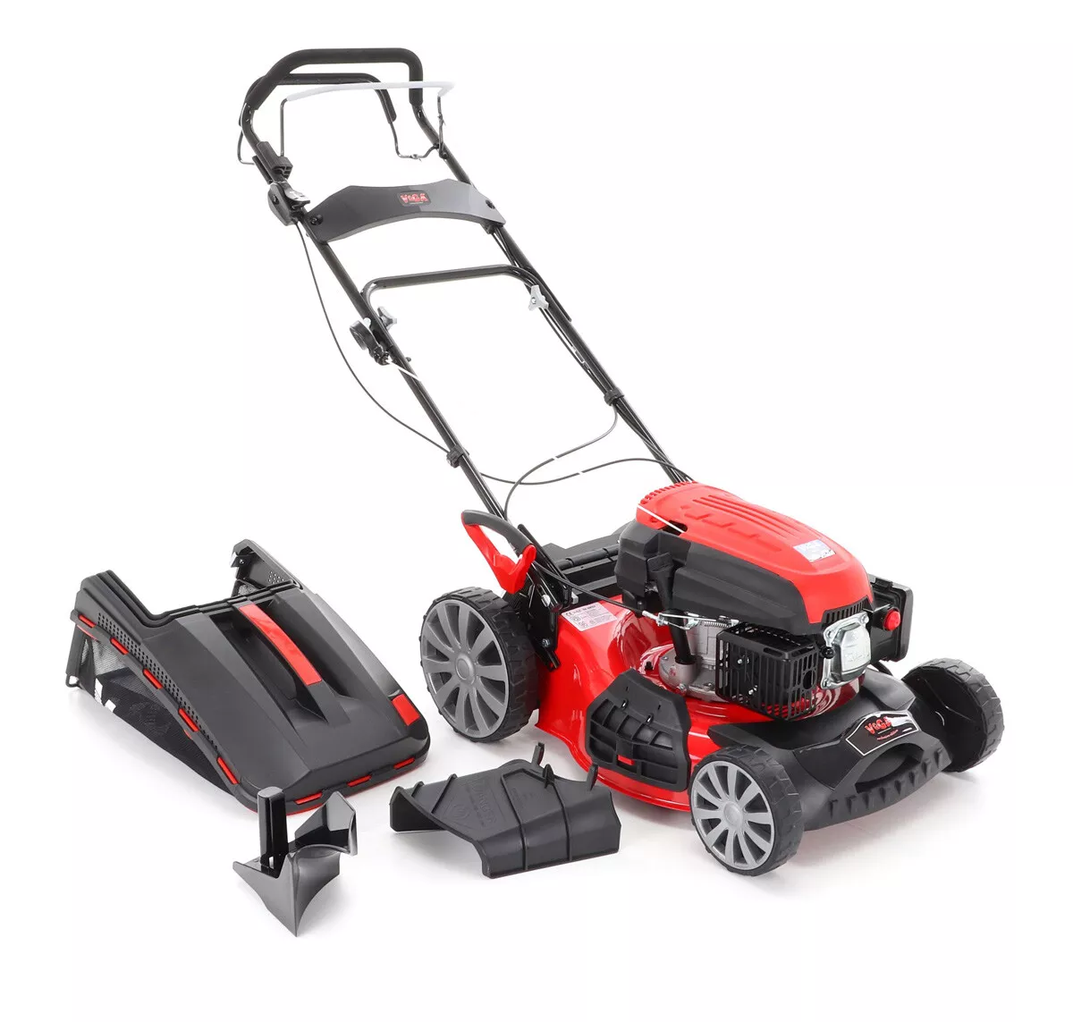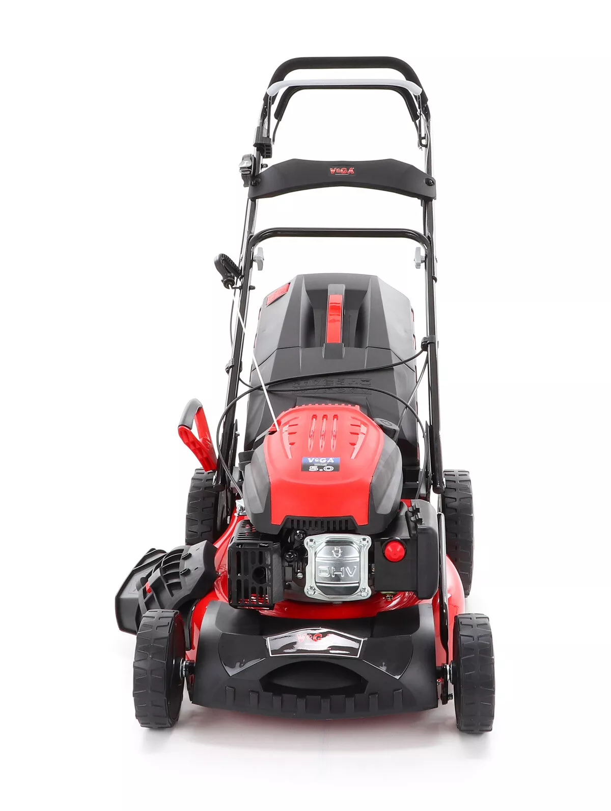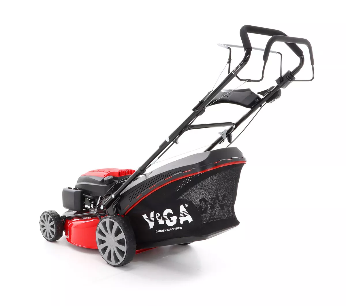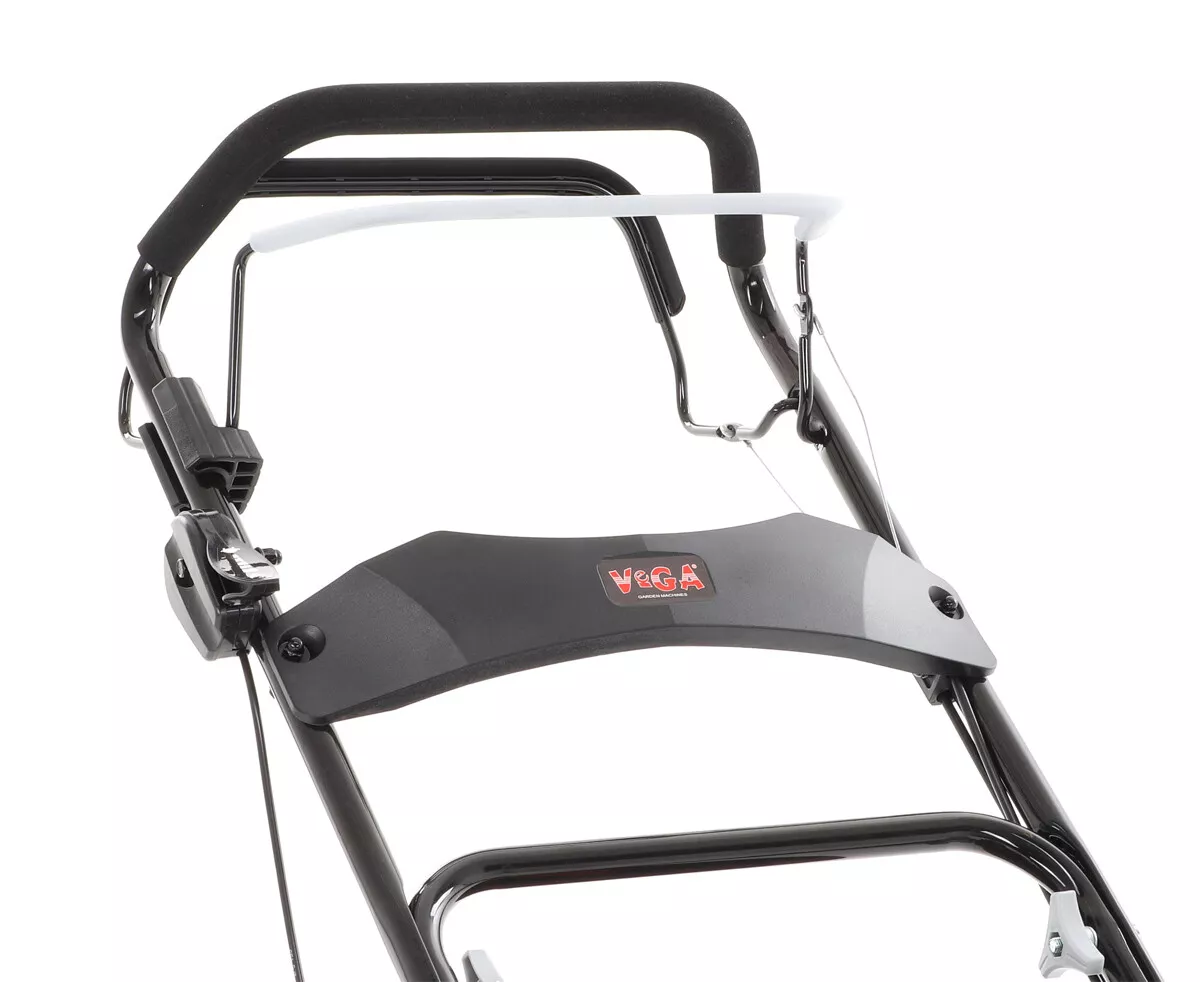 - Velká zadní pojezdová kola i přední kola jsou uložena v oboustraných kuličkových ložiscích, centrální nastavení výšky sečení je u značky VeGA také samozřejmostí, jako ergonomické měkčené madlo.