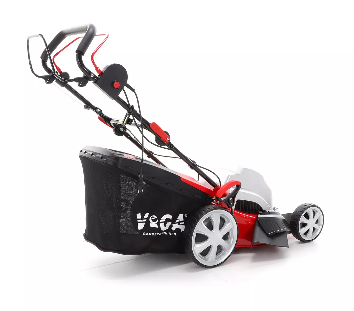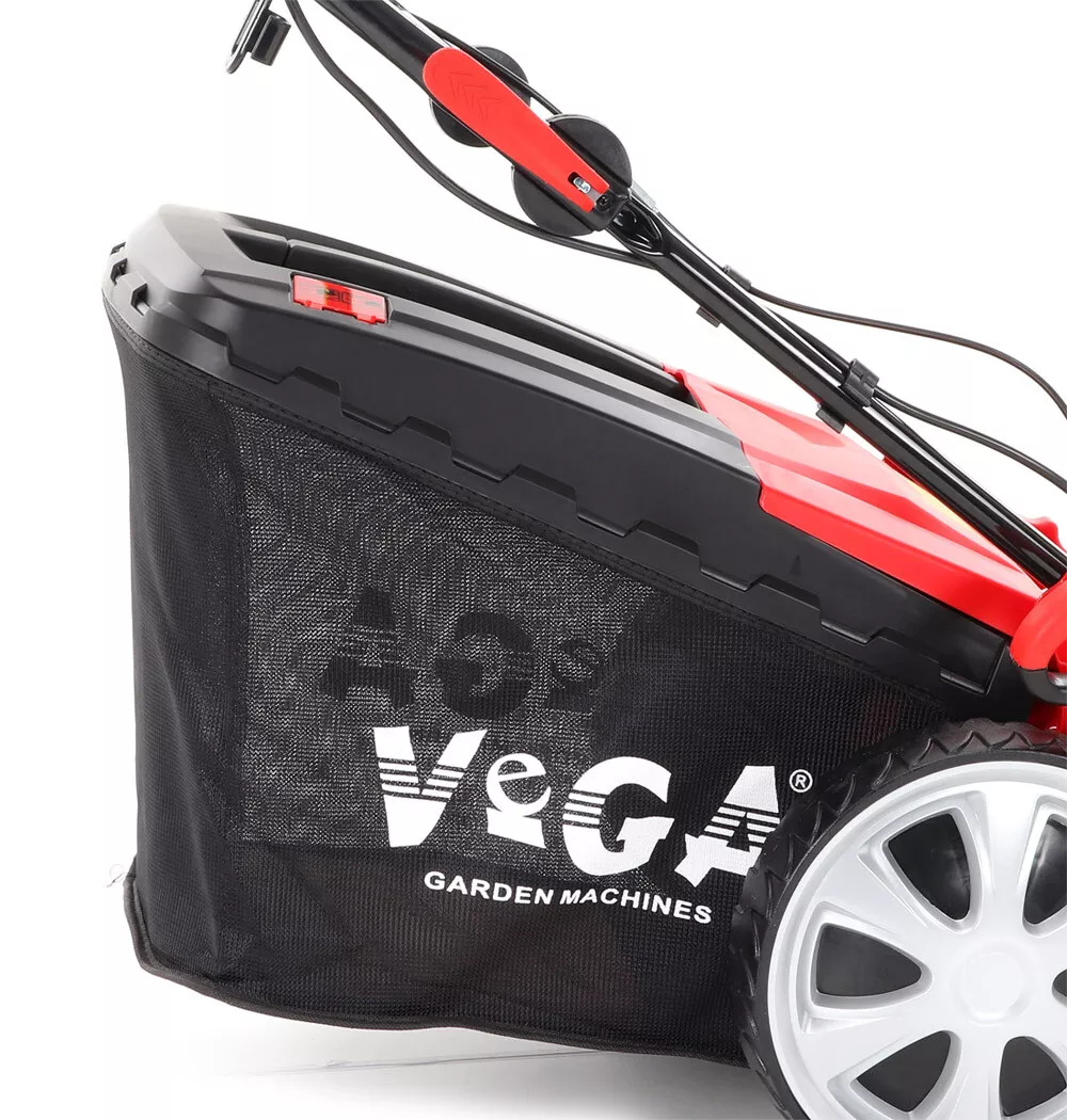 - Velká zadní pojezdová kola i přední kola jsou uložena v oboustraných kuličkových ložiscích, centrální nastavení výšky sečení je u značky VeGA také samozřejmostí, jako ergonomické měkčené madlo. Objemný sběrný koš o kapacitě 60 litrů má ukazatel naplnění.