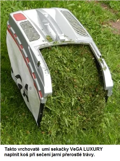 - Velkou předností této sekačky je variabilnost použití 6 in 1, což znamená, že motorová sekačka VeGA 525 4SXH s pojezdem umí sbírat posečenou trávu do koše, mulčuje, a nebo může vyhazovat trávu bočním deflektorem i zadním deflektorem ven.