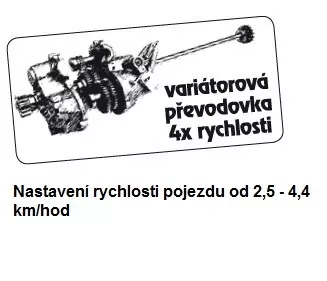 - Rychlost pojezdu: Variabilní 4 rychlosti, 2,5 - 4,4 km/h