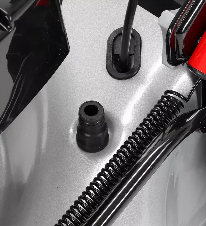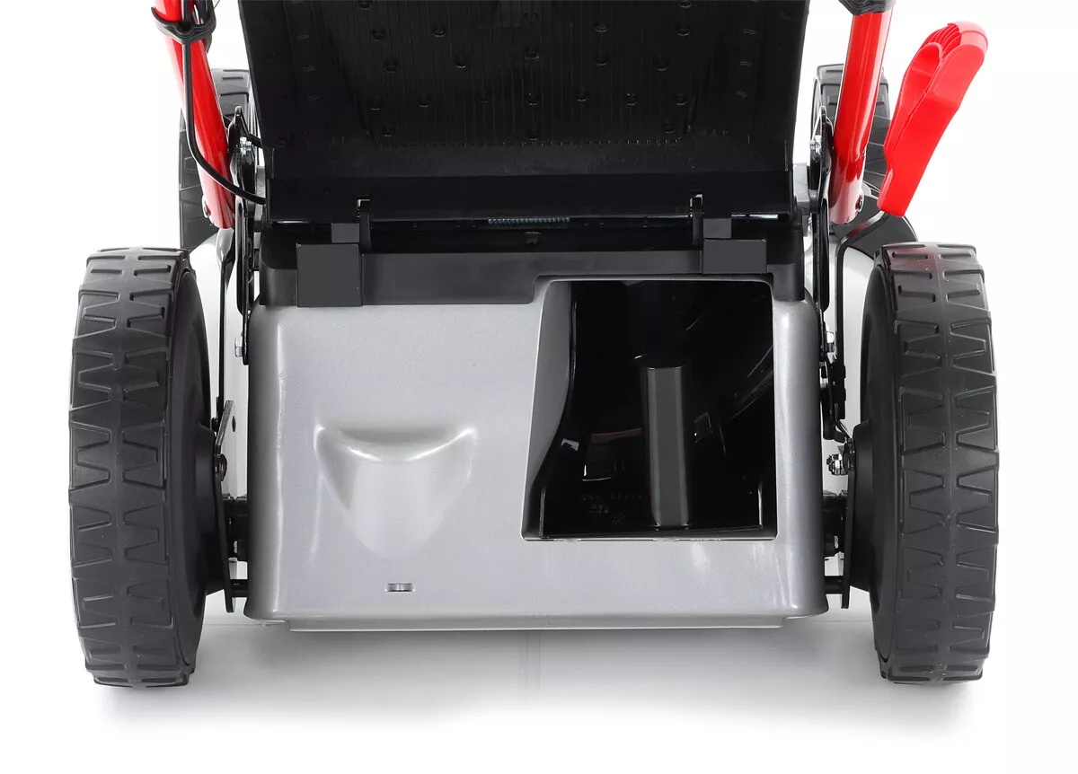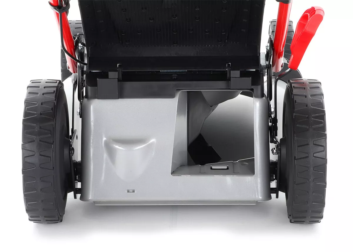 - Dvojité spojení madel pomocí dvou šroubů s křídlovou matkou jen podtrhuje masivnost provedení. Ovládací páky pojezdu a brzdy motoru jsou ergonomicky vytvarovány do pohodlných madel ve tvaru speciálních "kastliků", které výrazně zvyšují komfort obsluhy při sečení a zároveň snižují únavu. Ovládací panel je navržen s praktickým úložným prostorem a ideální dostupností ovládacích prvků pro obsluhu.