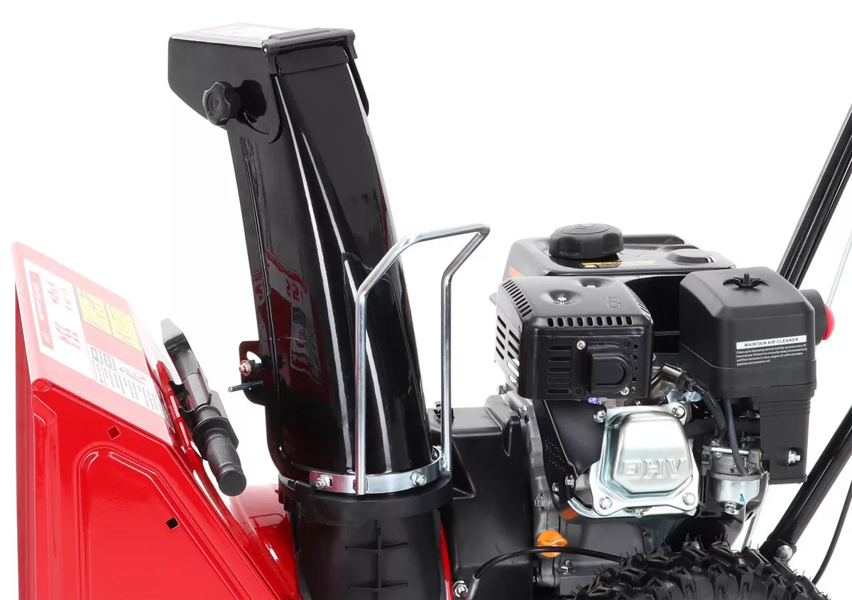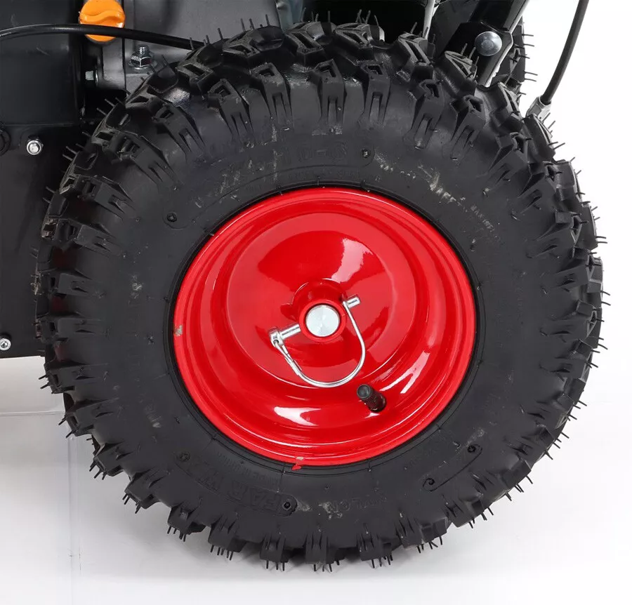 - Díky velkým, 13 x 4,1 - 6" kolům s hrubým dezénem a plastovým kluzákům na stranách naběrače bude manipulace s frézou na sněhu snadná. Komín, kterým je možné odhodit sníh do vzdálenosti 7 - 12 m, je nastavitelný pomocí praktické páčky na levé straně v rozmezí až 190°.