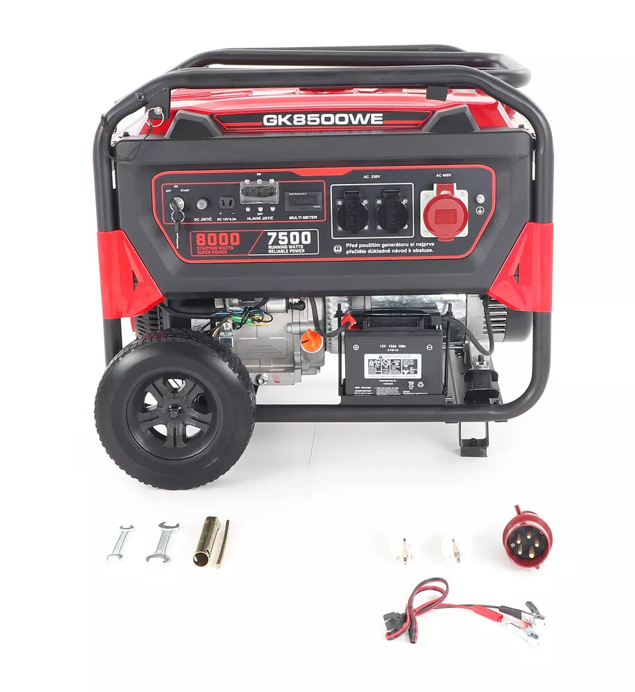 - Třífázová elektrocentrála.Maximální výkon 7000 W, trvalý výkon 6500 W.Zásuvky 1x 400 V, 2 x 230 V, 1 x12 V