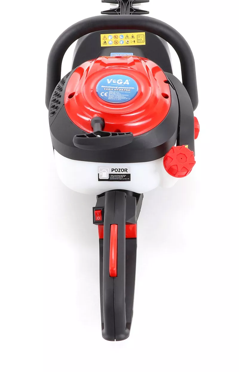- Benzínový plotostřih na živý plot VeGA HT 34750 je vybavený 2-taktním motorem s výkonem 1,0 HP / 0,75 kW . Tento benzínový plotostřih je stvořený pro úpravu živých plotů a jiných úprav na zahradě. Plotostřih je lehký, ergonomický, hravě si poradí s větvemi do průměru 28 mm . Rukojeť je komfortní, ergonomická a dá se nastavit v několika různých polohách. Nůž je broušený laserem . Délka lišty je 750 mm .
