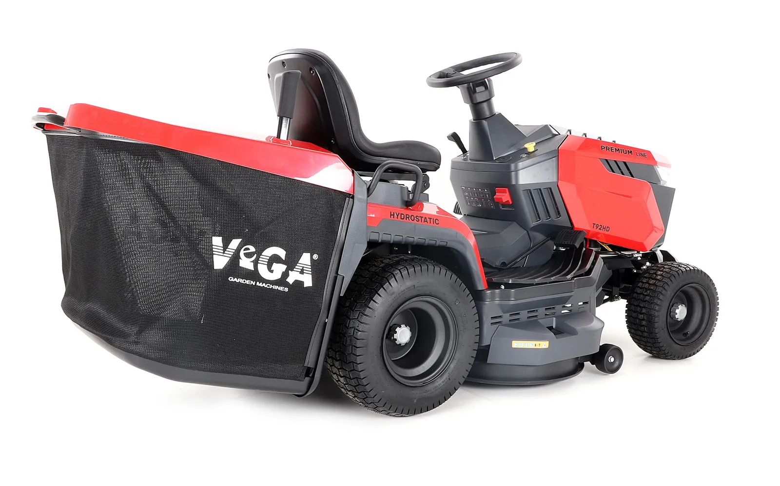 - Zahradní traktor VeGA T92HDZahradní traktor VeGA T92HD je špičkovým pomocníkem pro údržbu větších travnatých ploch. Tento stroj je vybaven výkonným jednoválcovým motorem Loncin LC1P92F-1 s tlakovým mazáním o objemu 452 ccm, který poskytuje výkon 9,2 kW. Díky palivové nádrži o objemu 8,5 litru se můžete spolehnout na dlouhou pracovní dobu bez nutnosti častého doplňování paliva.Šířka záběru sečení je 92 cm a sekačka je vybavena dvěma sekacími noži. Zapínání sečení probíhá pohodlně pomocí systému PTO. Výška sečení je nastavitelná v šesti různých polohách od 30 do 90 mm, což umožňuje přizpůsobit se jakémukoliv terénu a typu trávníku. Pro ještě větší flexibilitu je zahradní traktor VeGA T92HD vybaven funkcí sečení při couvání a mulčovací záslepkou pro ekologické zpracování trávy.Hydrostatická převodovka zajišťuje plynulý a komfortní pohyb i v náročném terénu. Díky velkému sběrnému koši o objemu 280 litrů se nemusíte obávat častého vysypávání posekané trávy. Přední kola o velikosti 15“ x 7.00 “- 8 a zadní kola o velikosti 18“ x 10.00“- 9 spolu s dvojicí anti-skalpovacích kol zajišťují stabilitu a ochranu vašeho trávníku před poškozením.Mezi další praktické funkce patří LED světla pro práci za šera, digitální display s informacemi o provozu a robustní hmotnost 225 kg bez náplní, která zajišťuje vysokou stabilitu a odolnost stroje. Zahradní traktor VeGA T92HD je ideální volbou pro ty, kteří požadují spolehlivý, výkonný a komfortní stroj pro pravidelnou údržbu velkých ploch.
