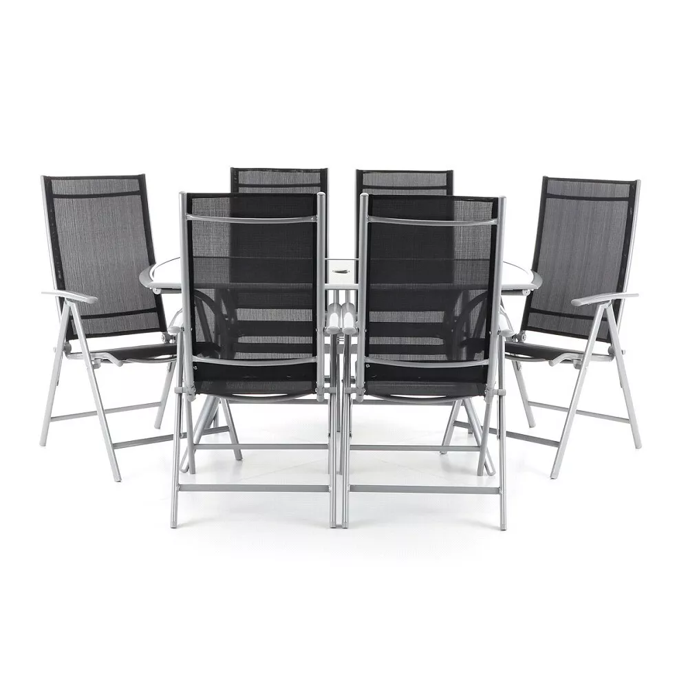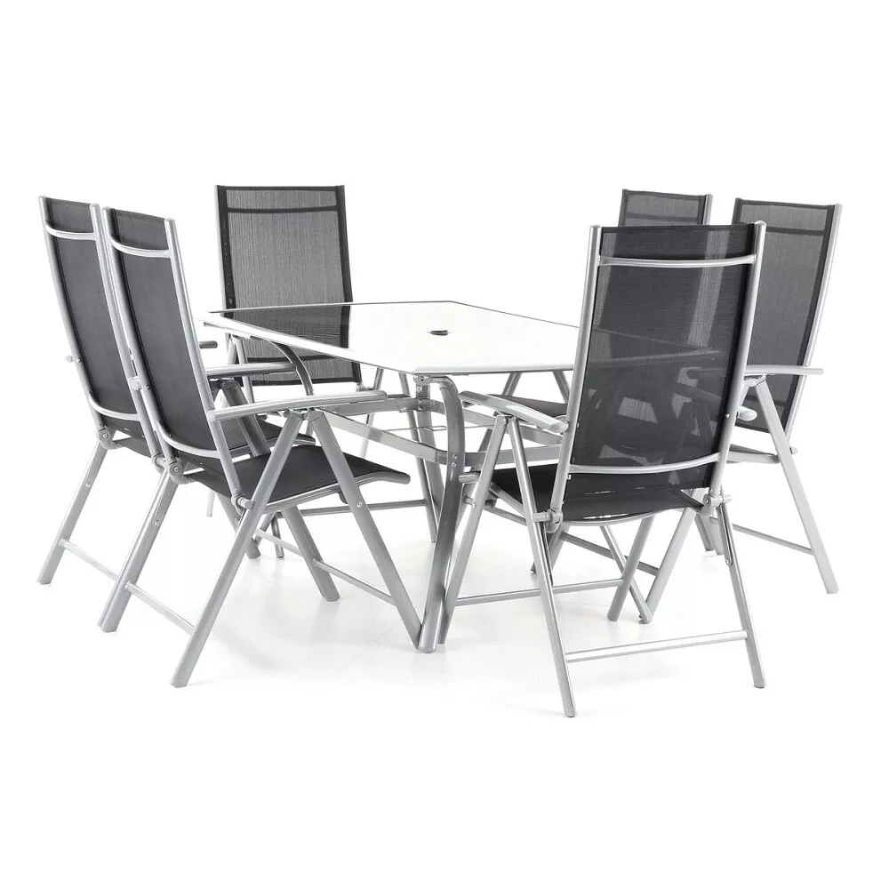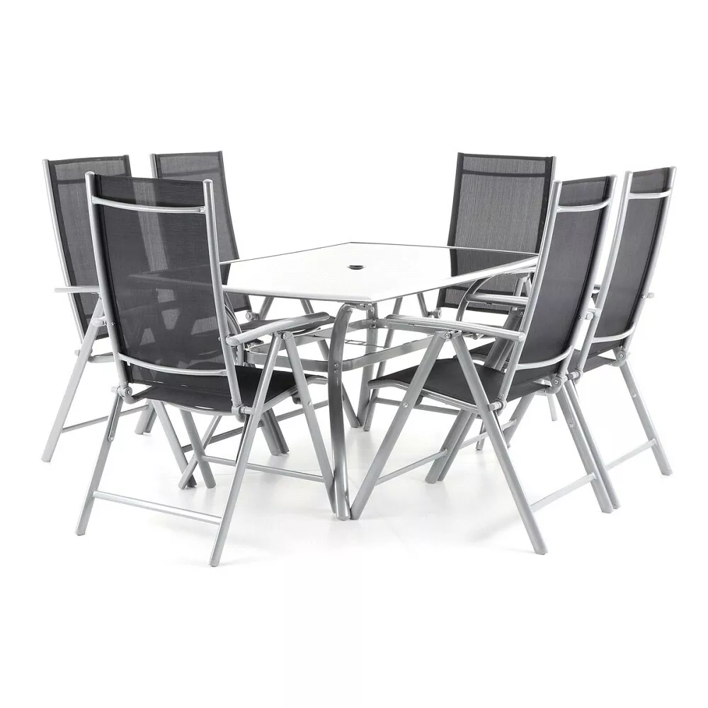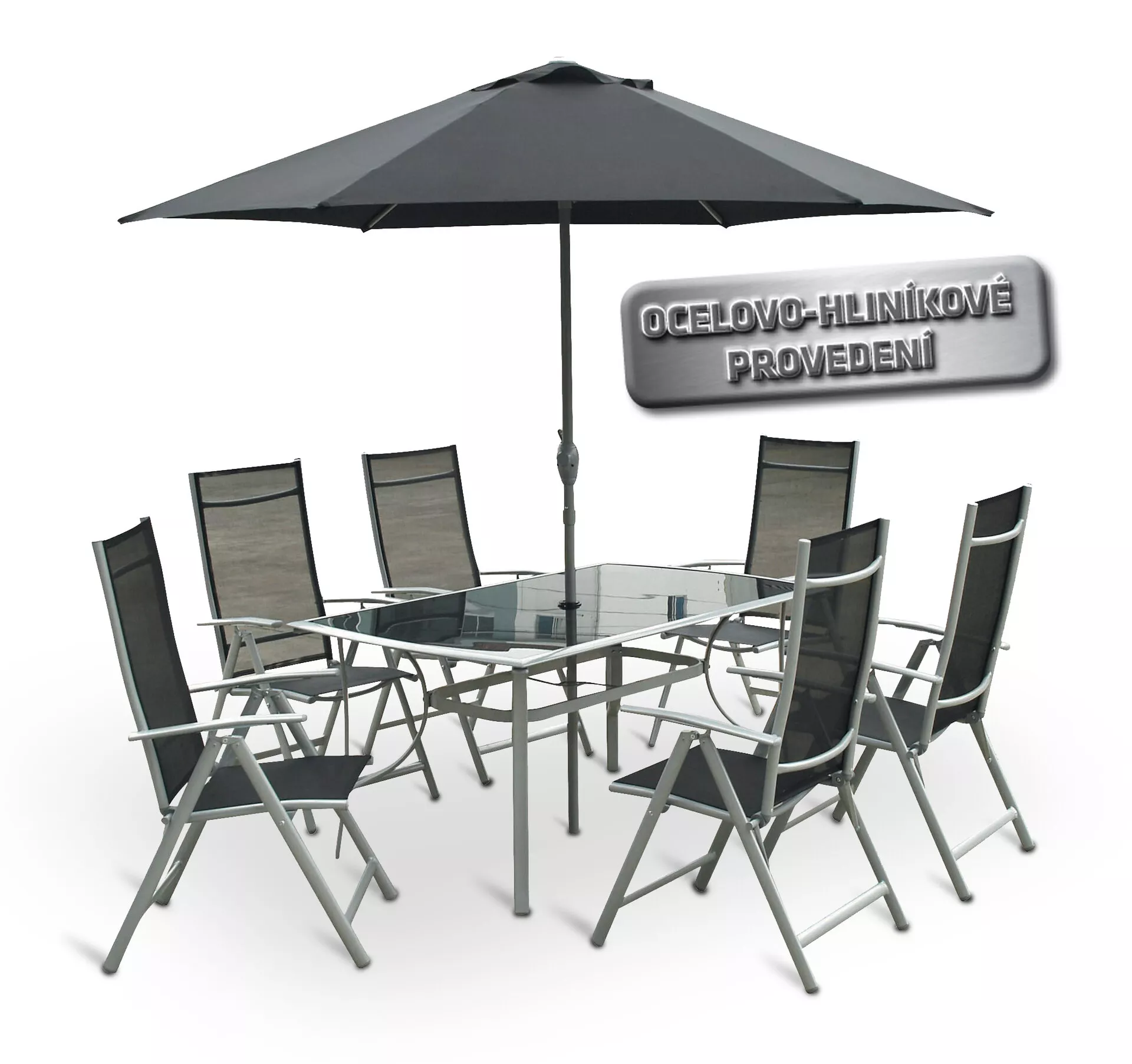 - Luxusní stolová sestava 6-ti křesel a stolu z ocelo-hliníkových profilů povrchově dokončena komaxitovou úpravou.