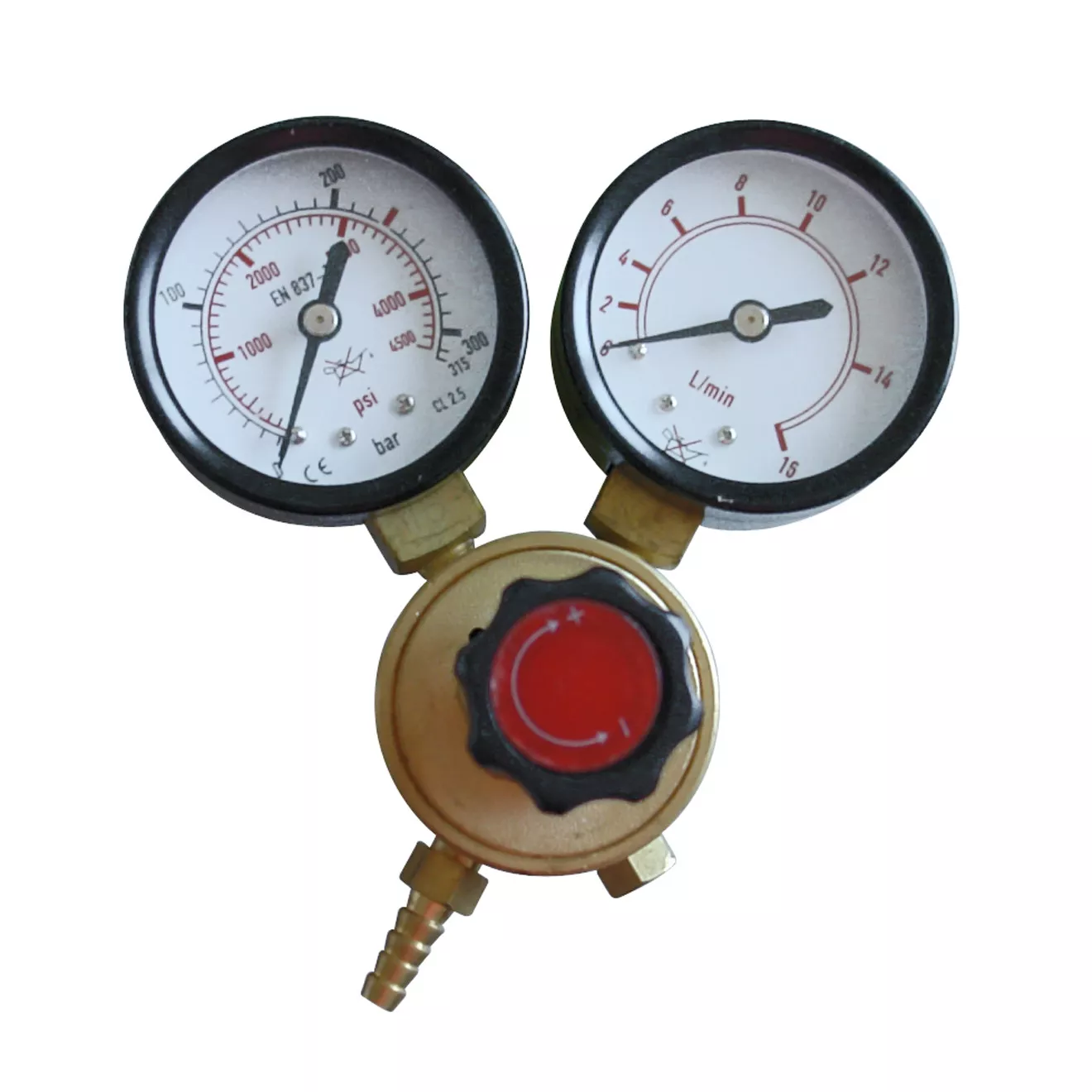 - Jednostupňový redukční ventil, určený ke snížení tlaku/nastavení průtoku technických plynů (-> 0 - 16 l/min.), odebíraných z tlakových lahví.Konstrukce: vysokotlaký manometr (-> tlak plynu v lahvi, 0 - 315 bar), pracovní manometr (-> indikace tlaku/množství plynu), uzavírací ventil (-> dle DIN EN 585), hadicová vsuvka pr